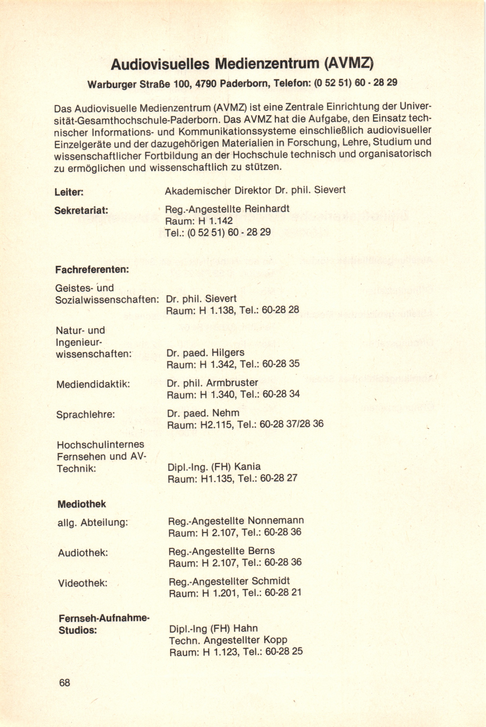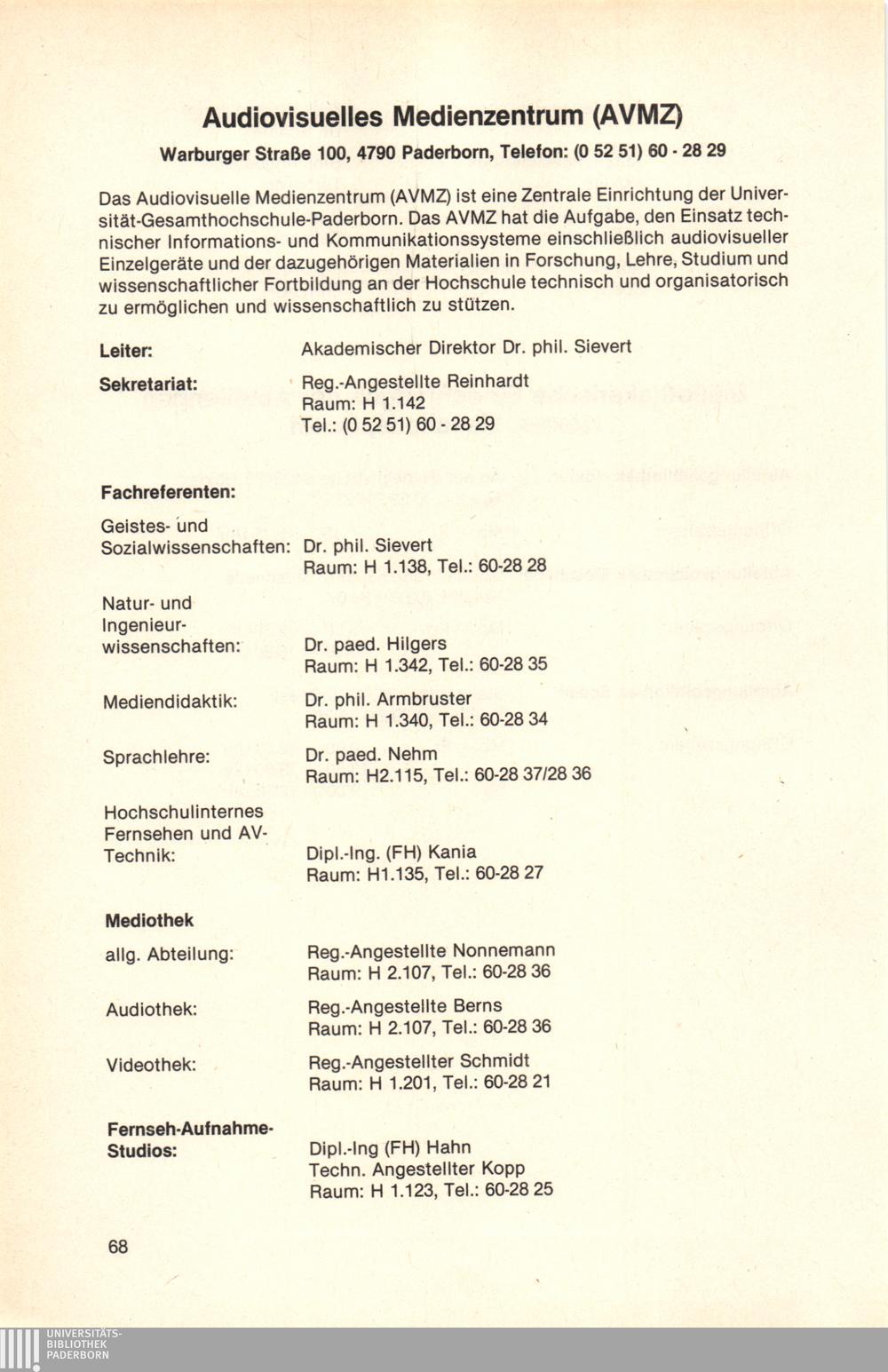 Personal- und Vorlesungsverzeichnis für die Universität Paderborn