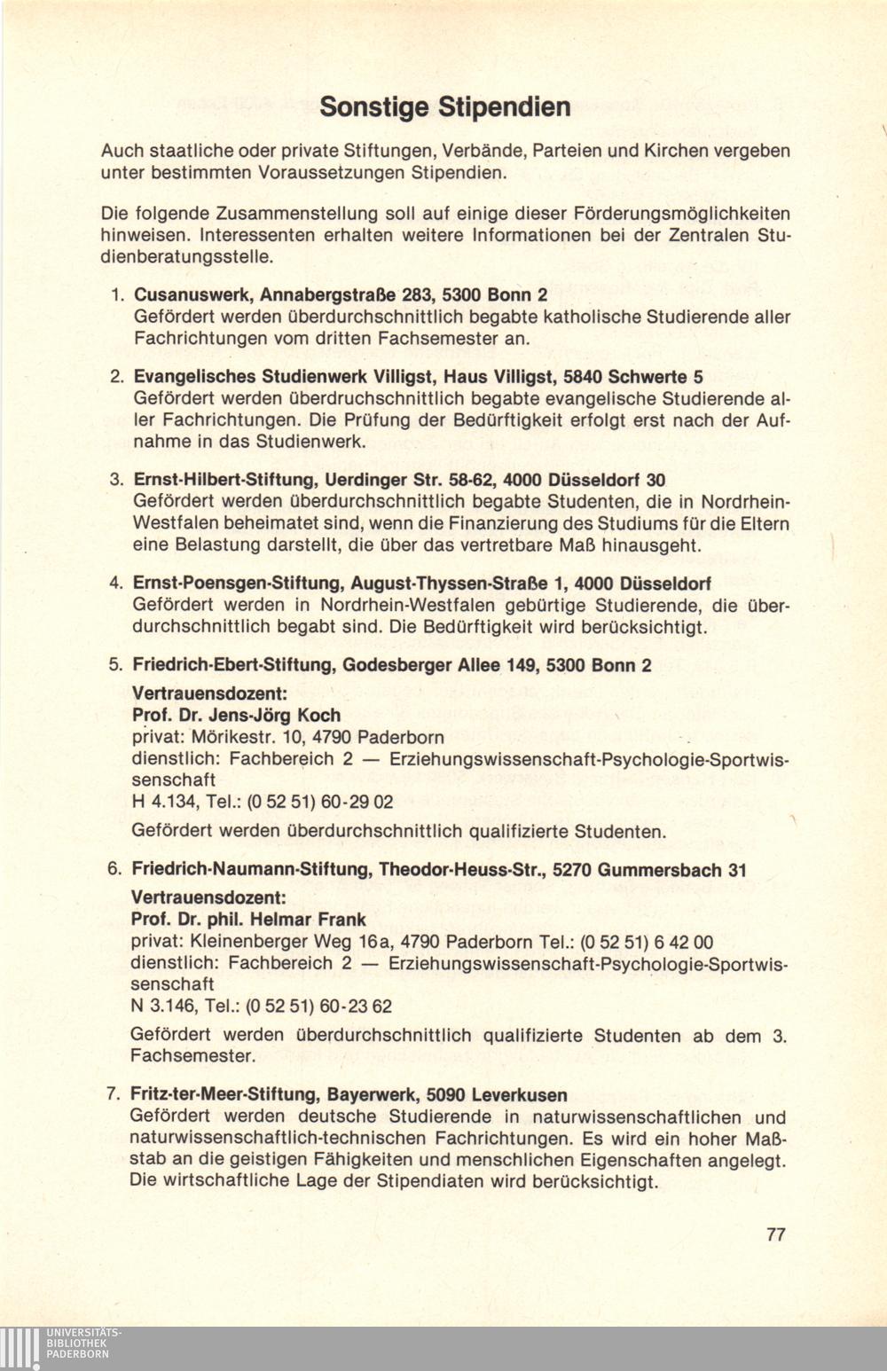 Personal- und Vorlesungsverzeichnis für die Universität Paderborn