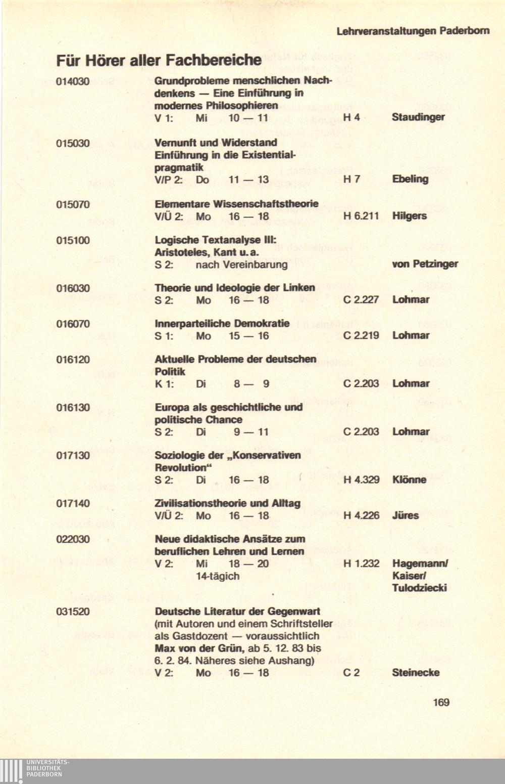 Personal- und Vorlesungsverzeichnis für die Universität Paderborn