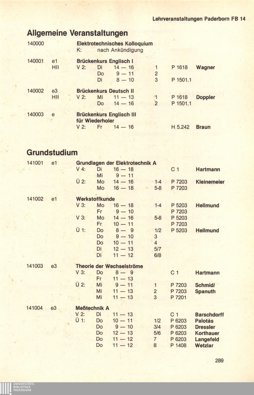 Personal- und Vorlesungsverzeichnis für die Universität Paderborn