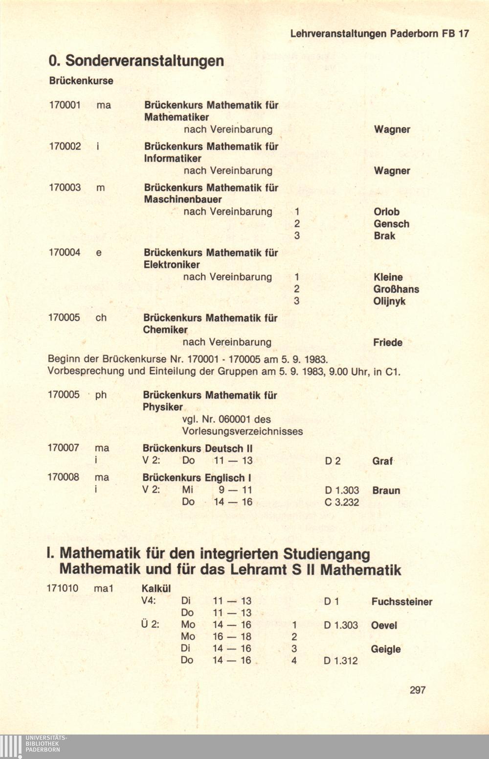 Personal- und Vorlesungsverzeichnis für die Universität Paderborn