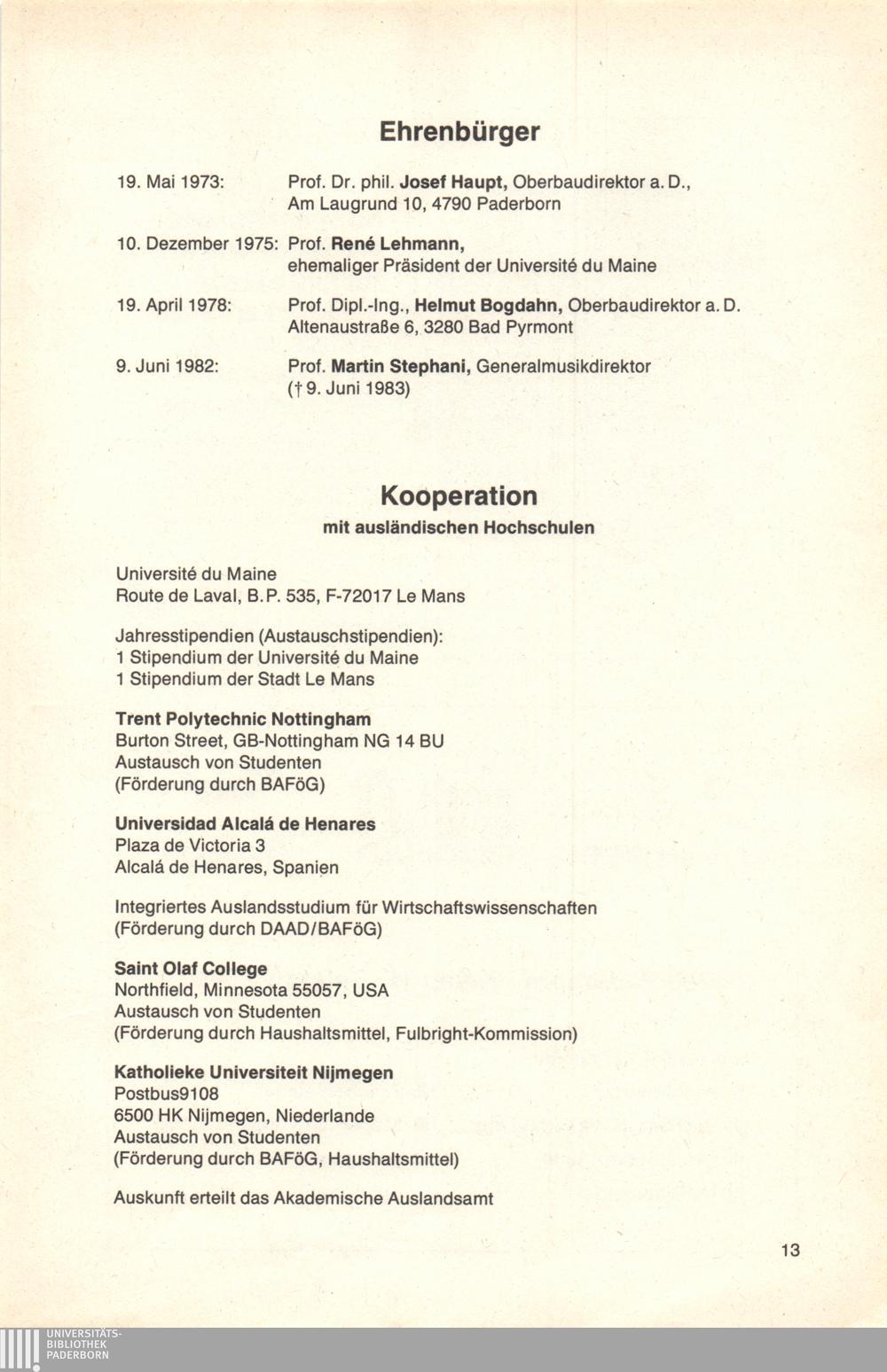 Personal- und Vorlesungsverzeichnis für die Universität Paderborn