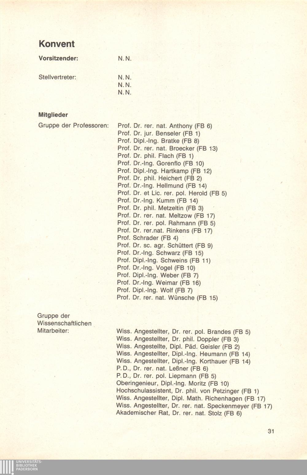 Personal- und Vorlesungsverzeichnis für die Universität Paderborn