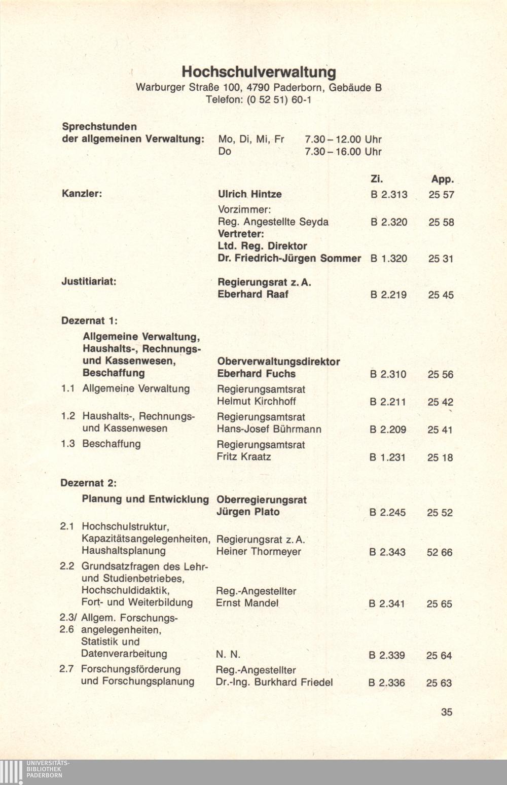 Personal- und Vorlesungsverzeichnis für die Universität Paderborn