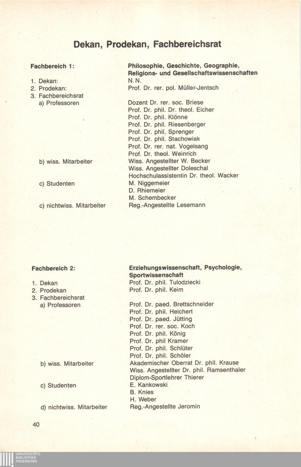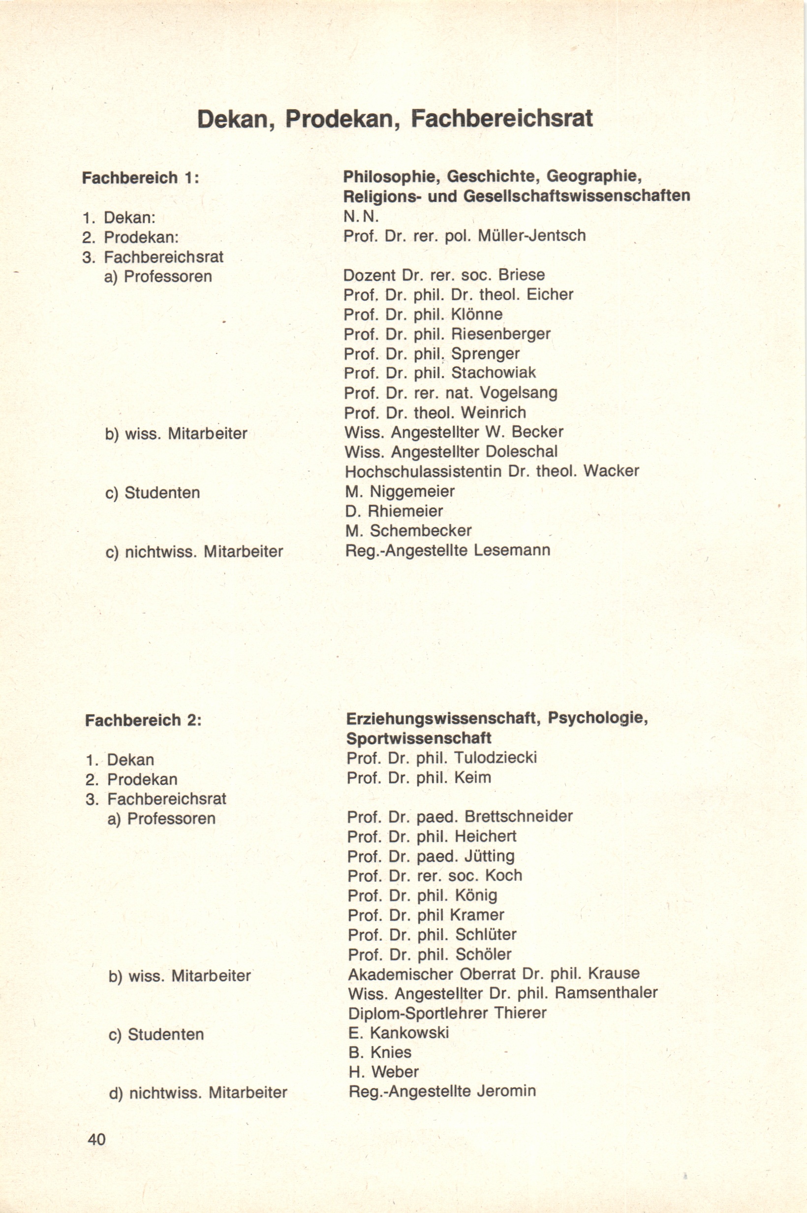 Dekan, Prodekan, Fachbereichsrat