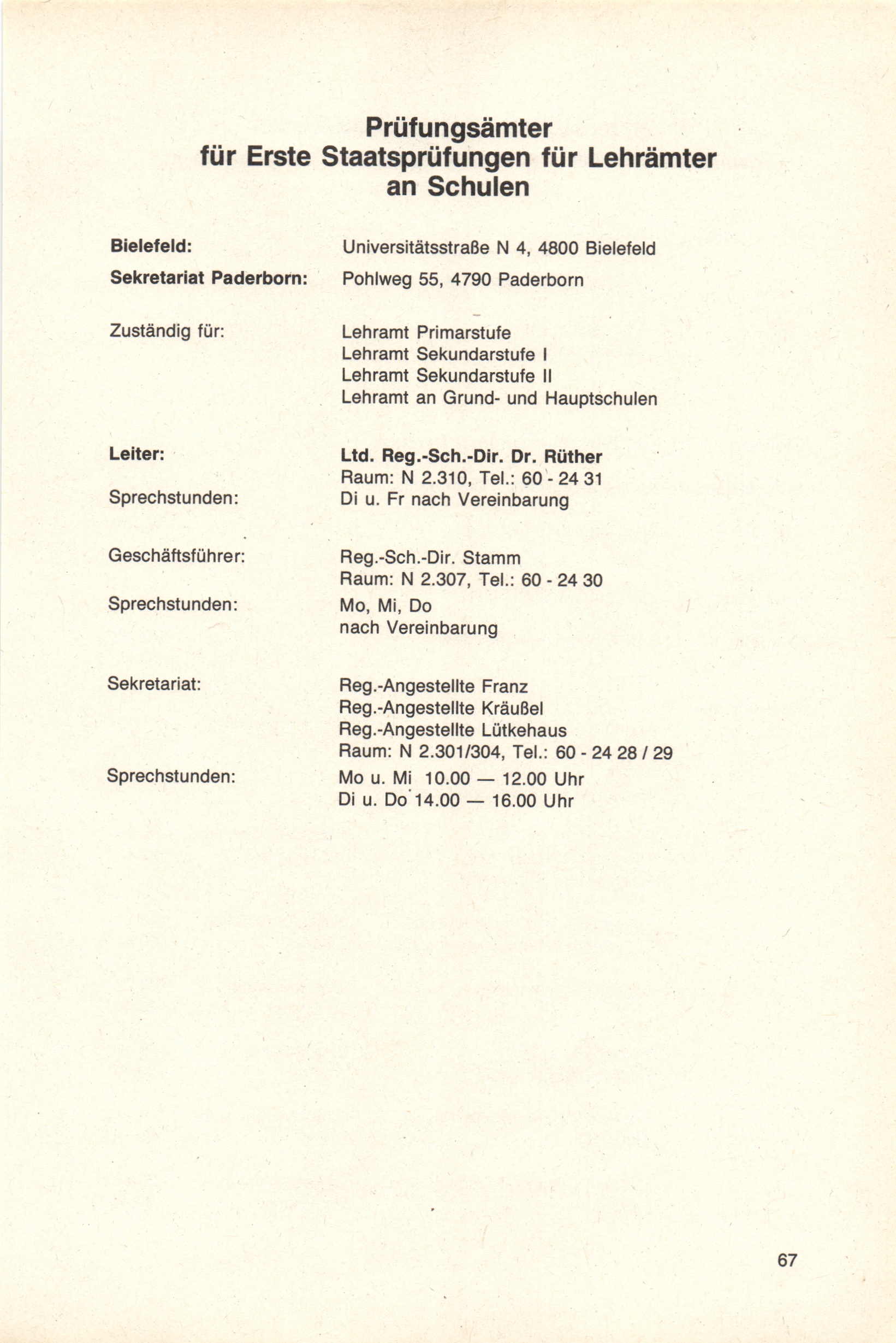 Prüfungsämter für Erste Staatsprüfungen für Lehrämter an Schulen