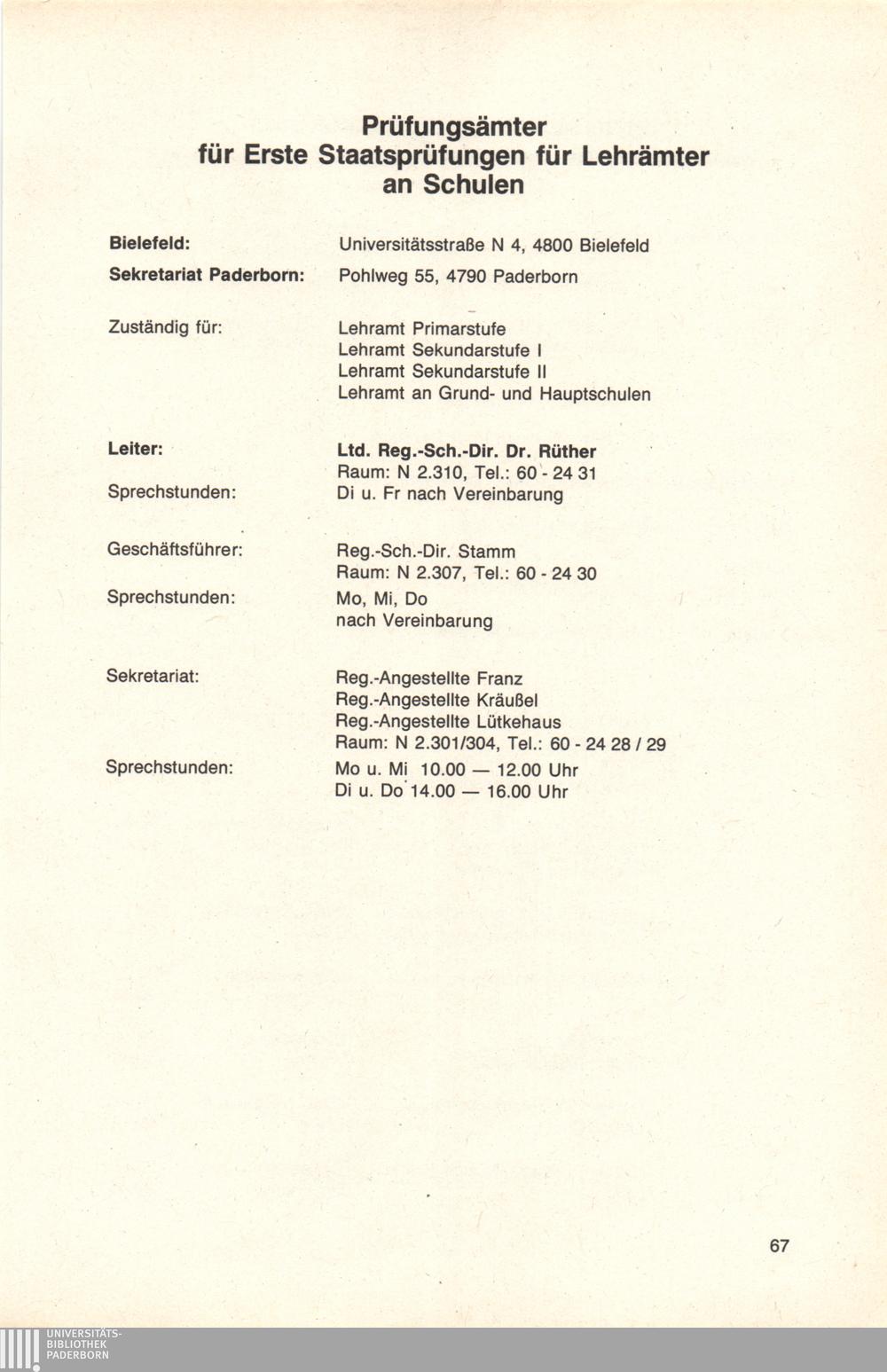 Personal- und Vorlesungsverzeichnis für die Universität Paderborn