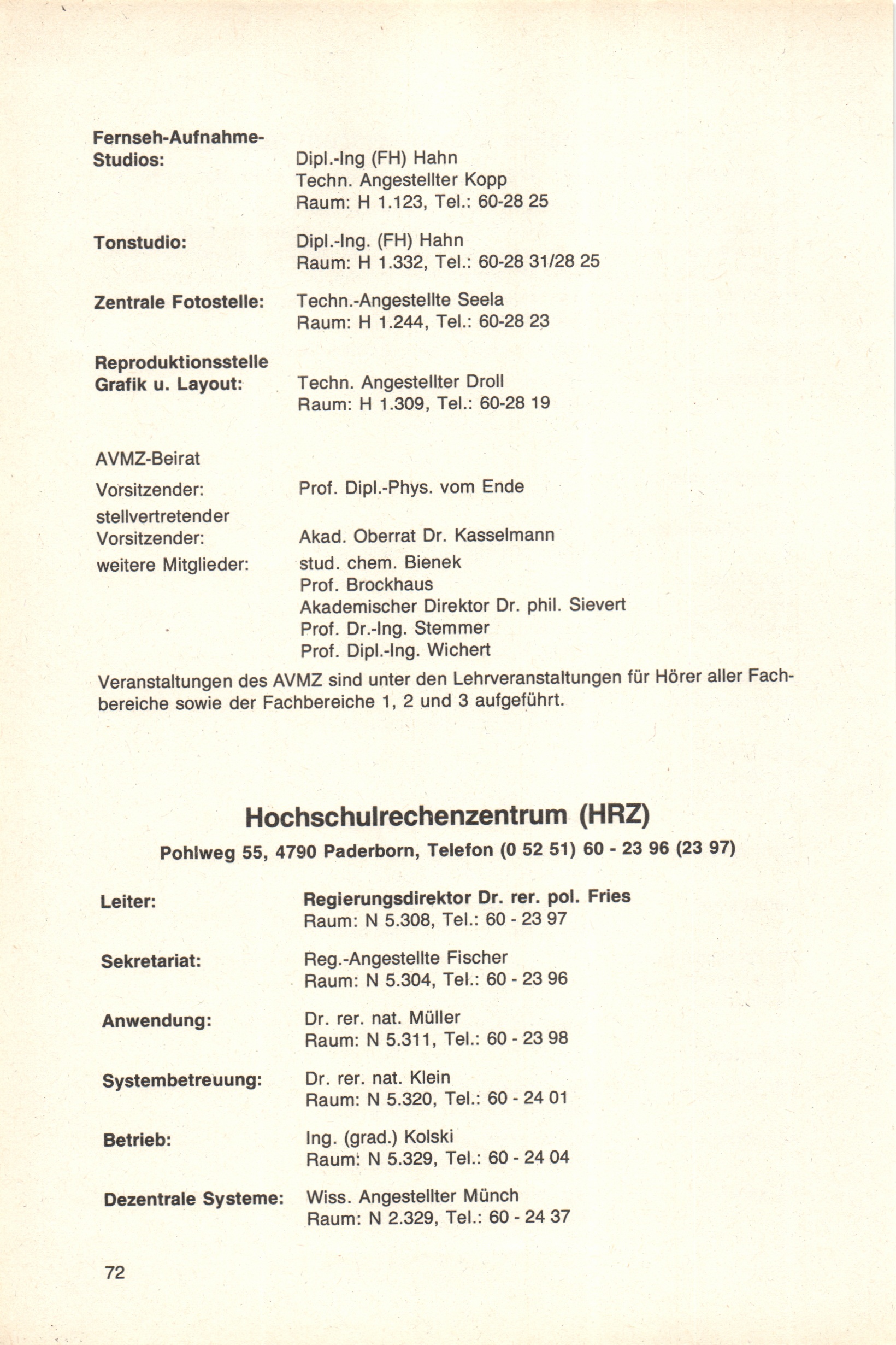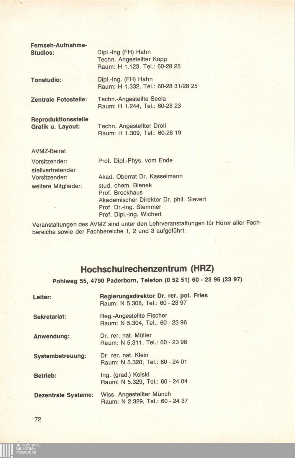 Personal- und Vorlesungsverzeichnis für die Universität Paderborn
