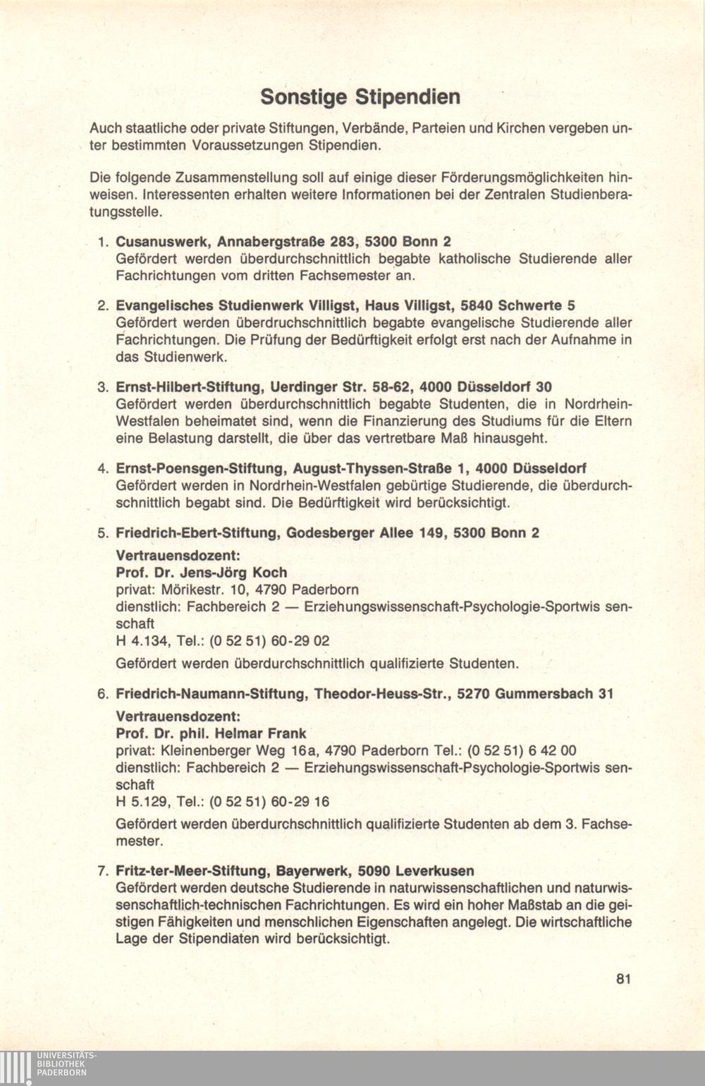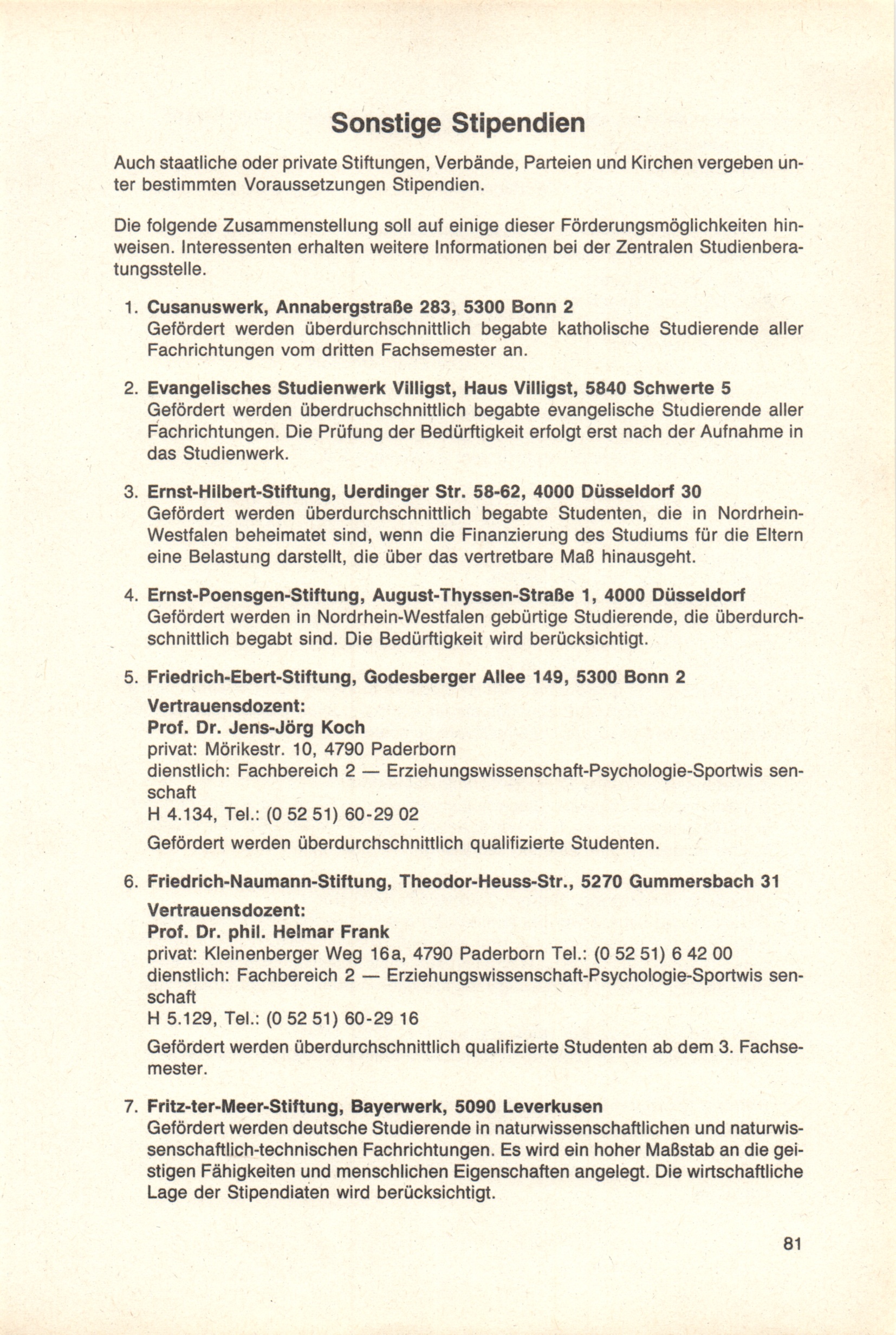Sonstige Stipendien