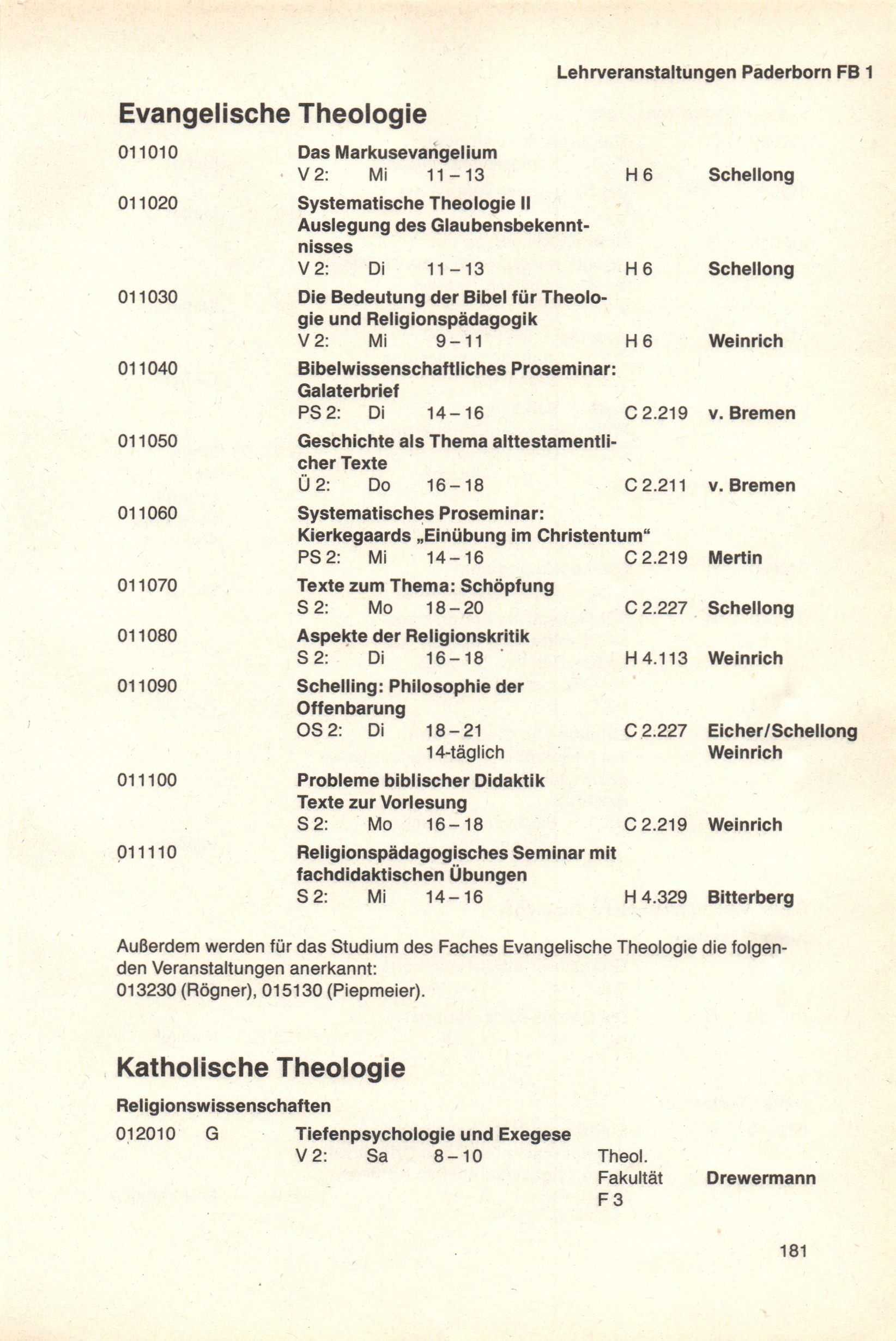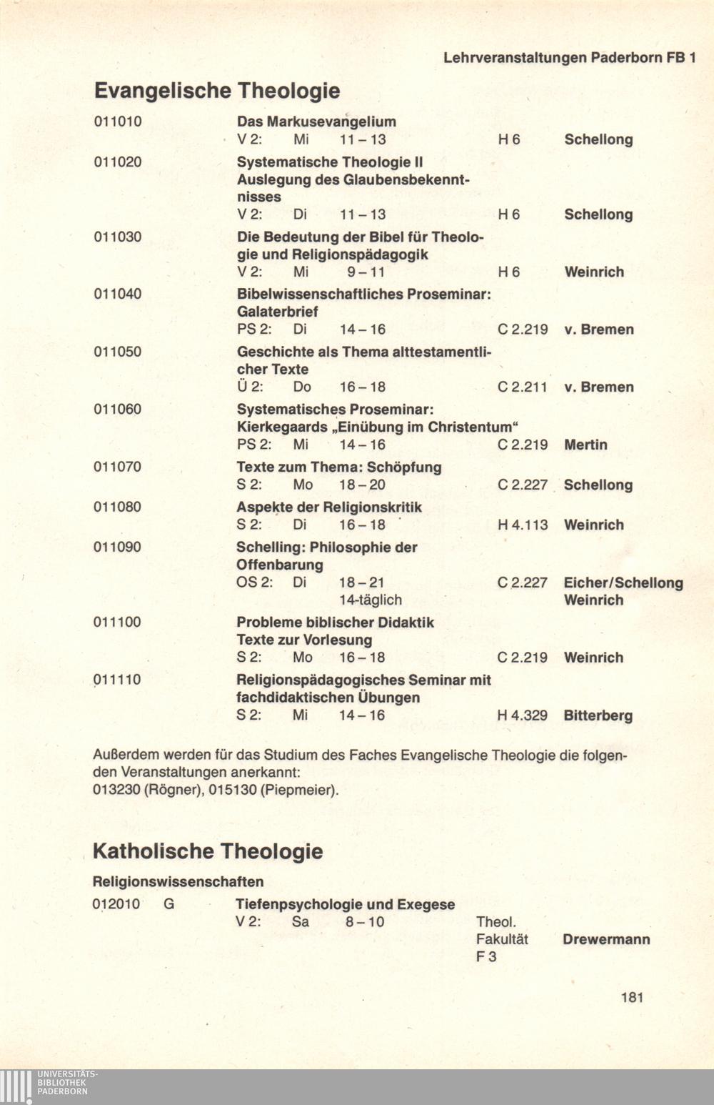 Personal- und Vorlesungsverzeichnis für die Universität Paderborn
