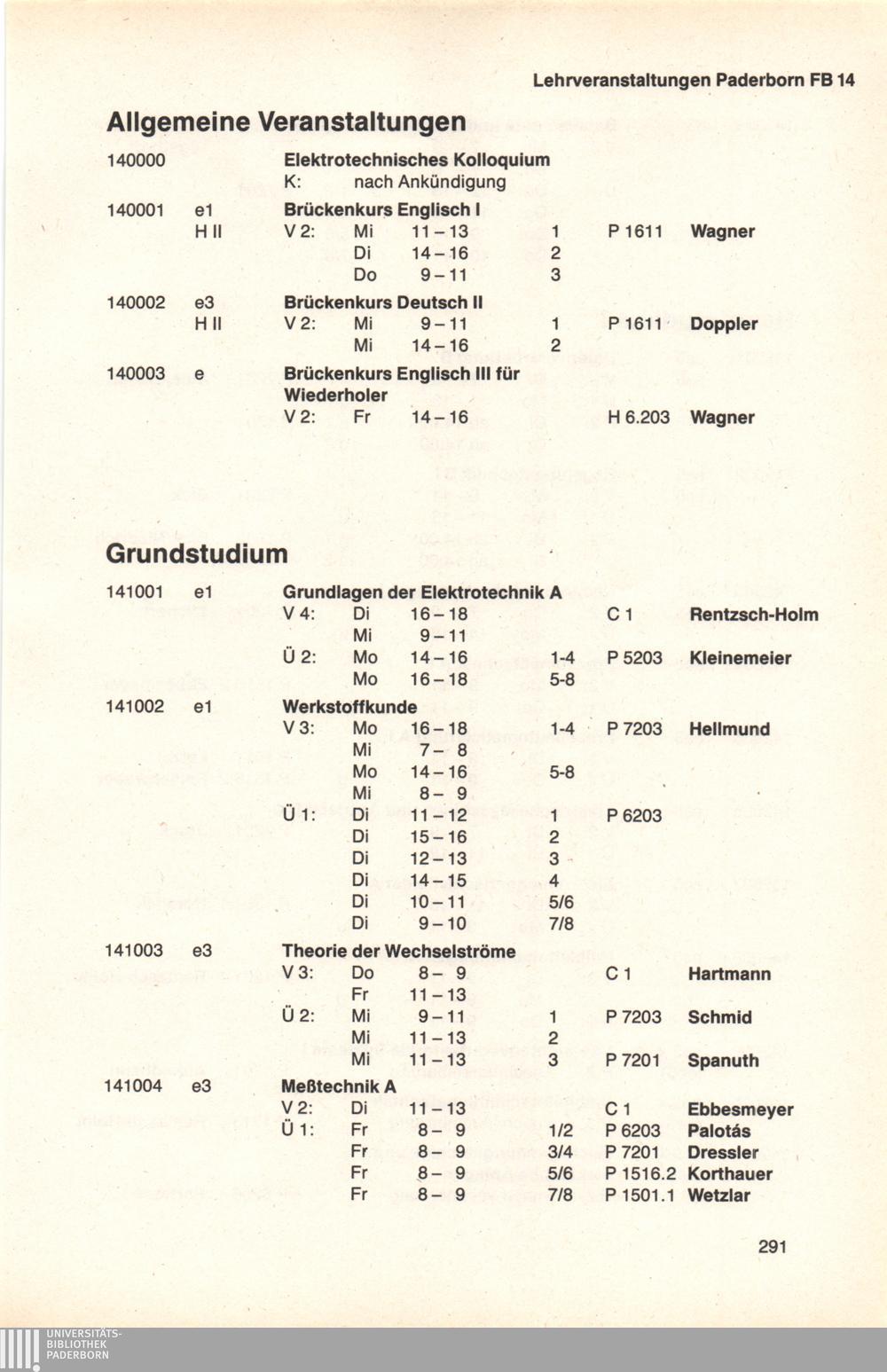 Personal- und Vorlesungsverzeichnis für die Universität Paderborn