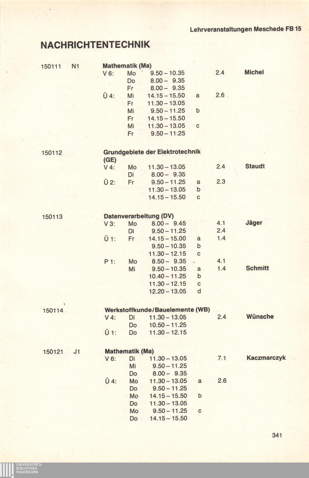 Personal- und Vorlesungsverzeichnis für die Universität Paderborn