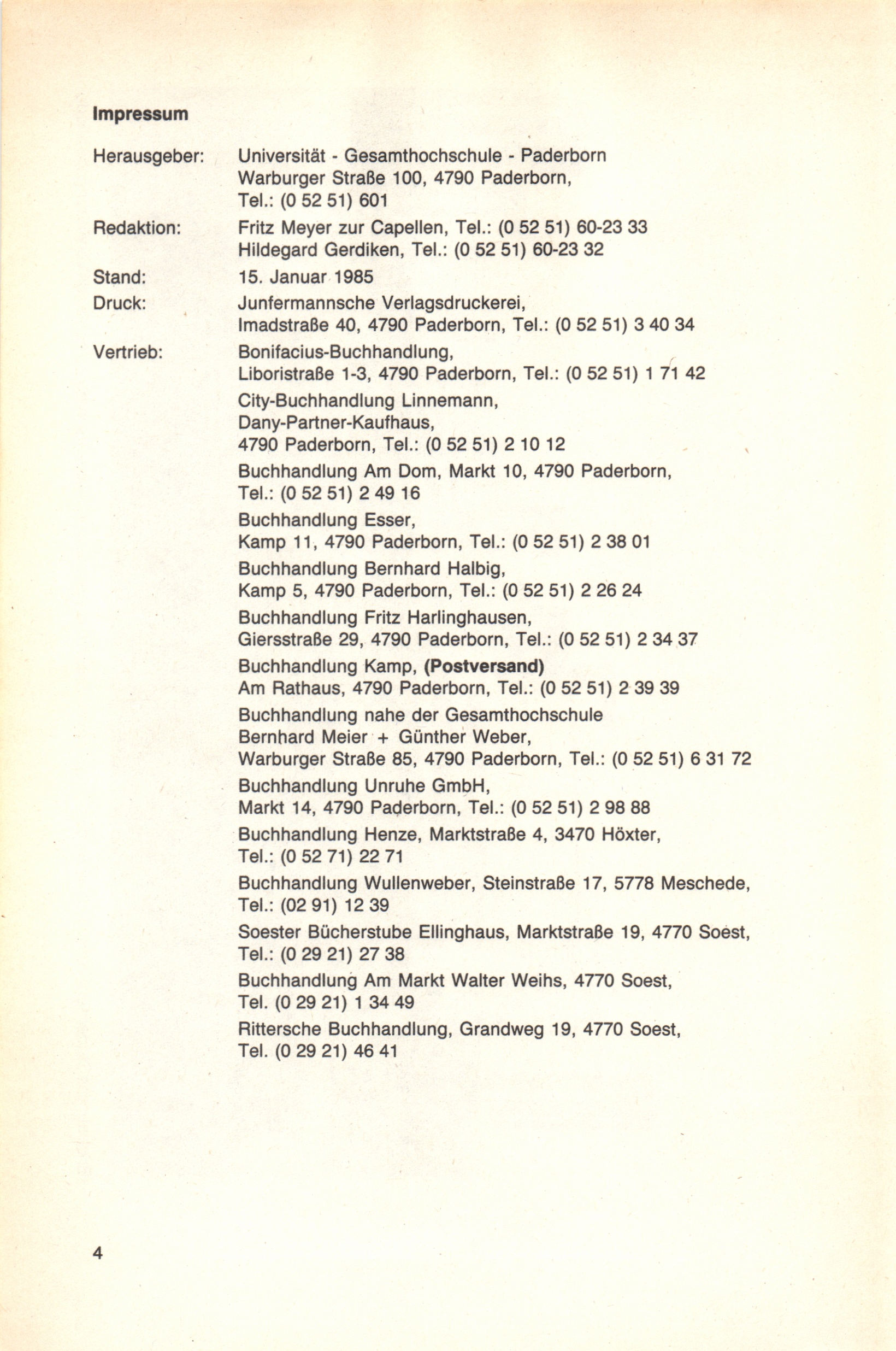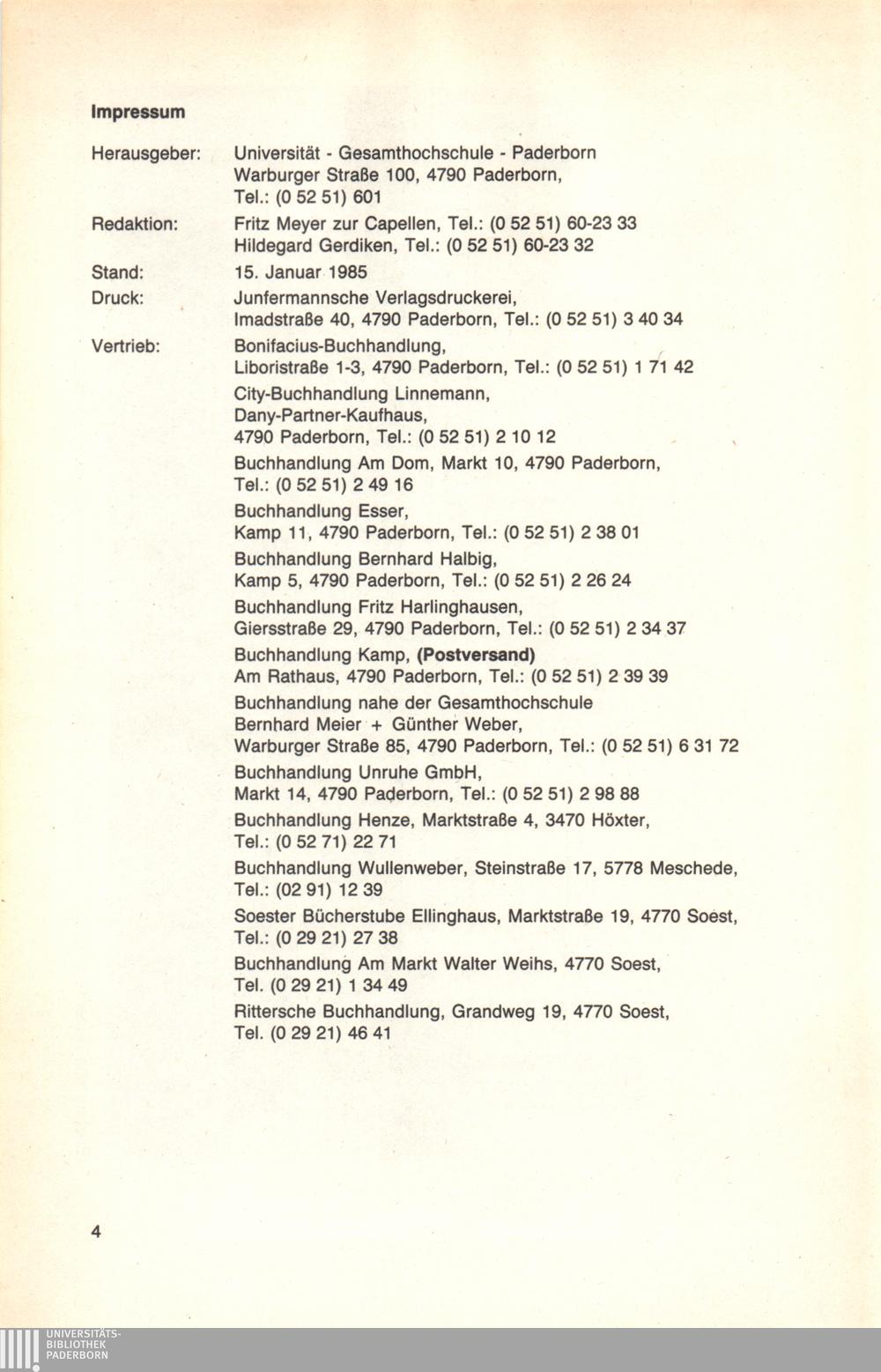 Personal- und Vorlesungsverzeichnis für die Universität Paderborn