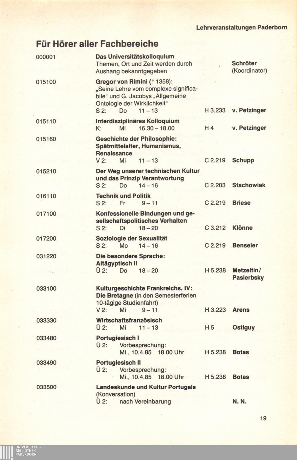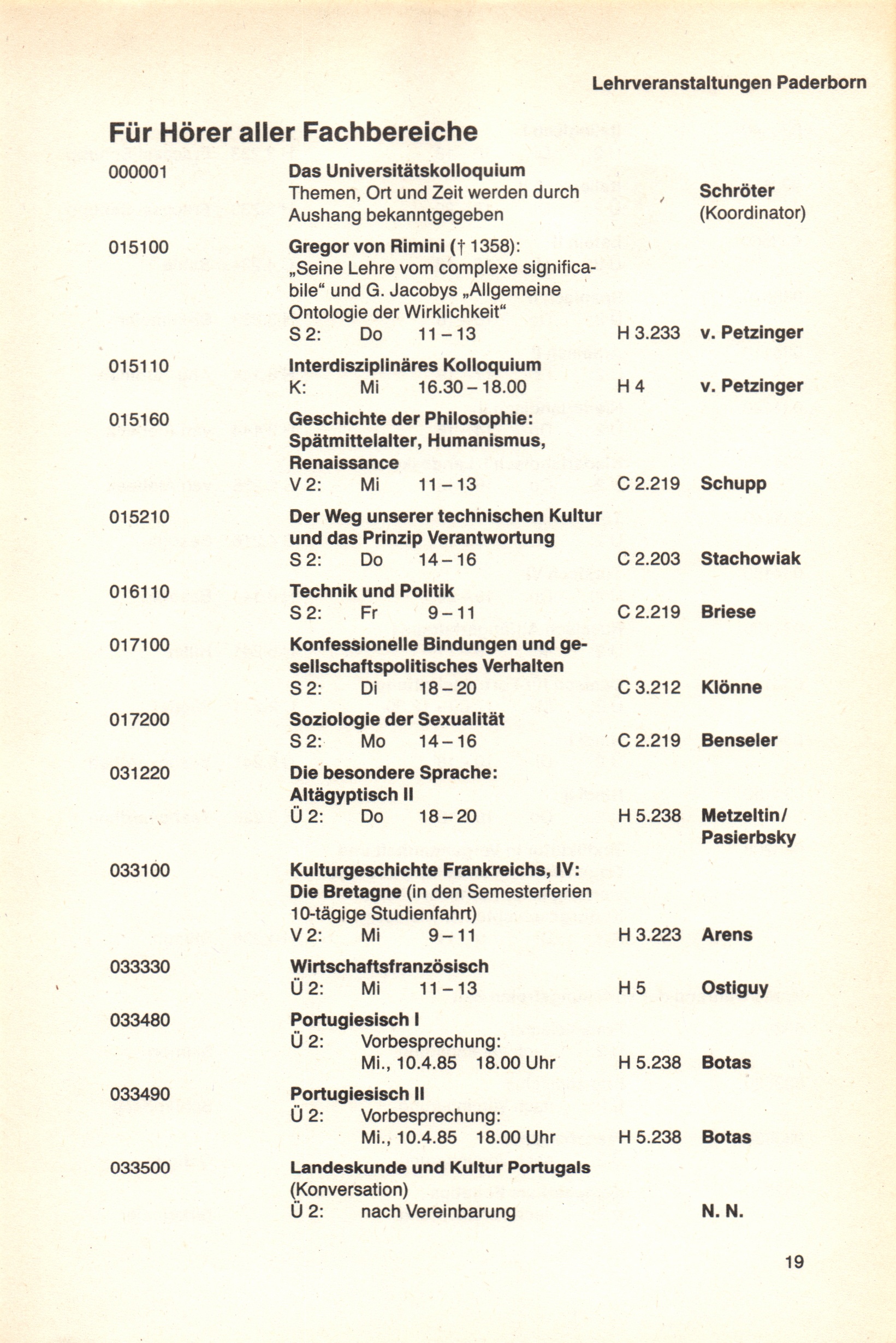 Personal- und Vorlesungsverzeichnis für die Universität Paderborn
