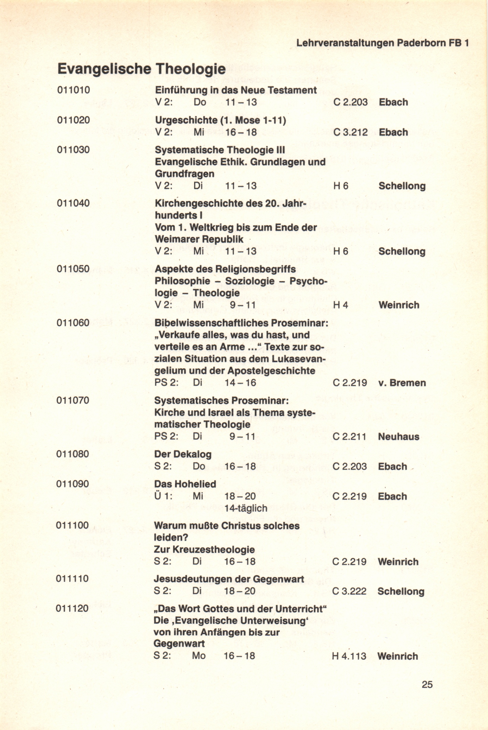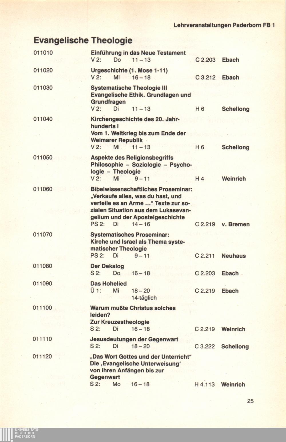 Personal- und Vorlesungsverzeichnis für die Universität Paderborn