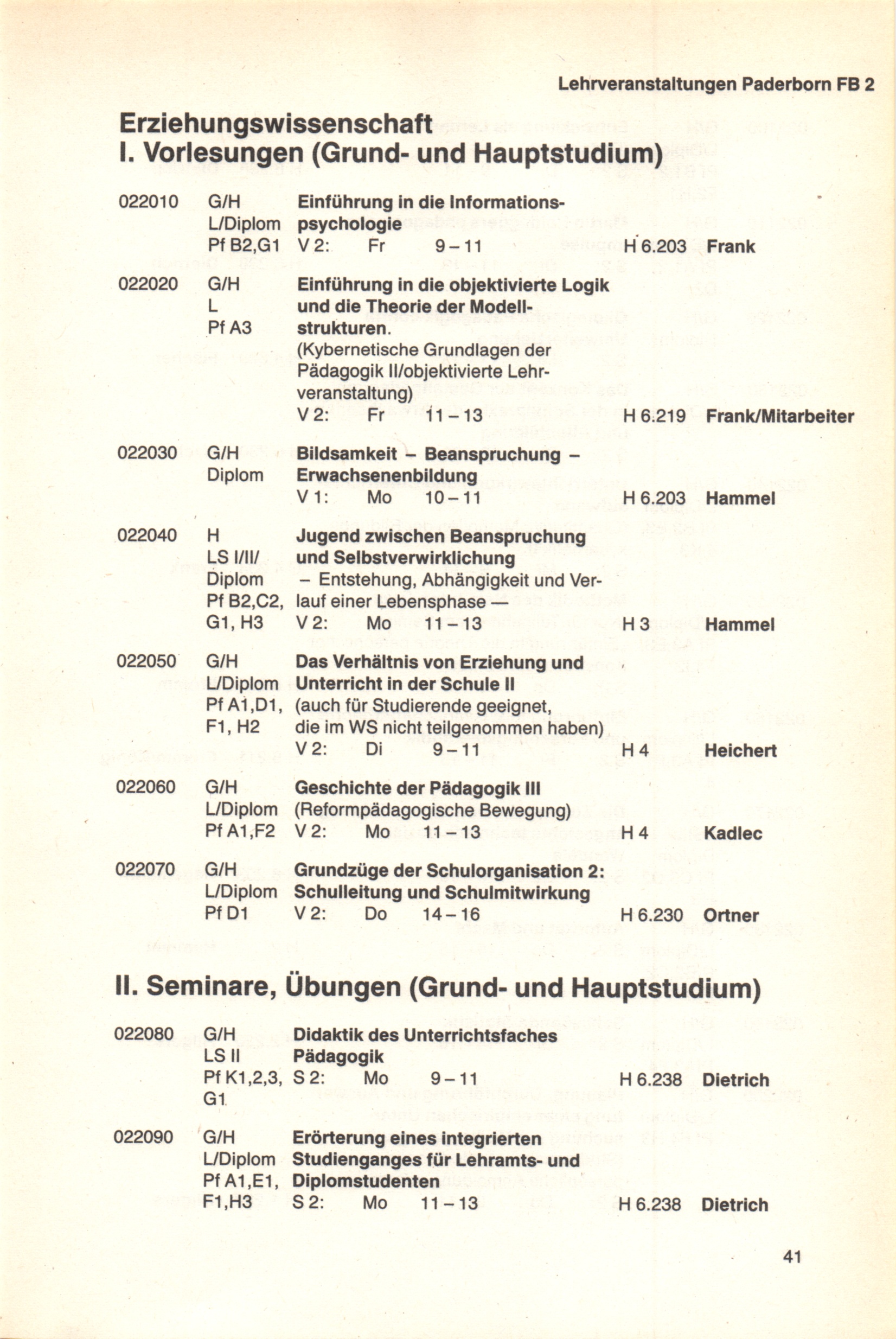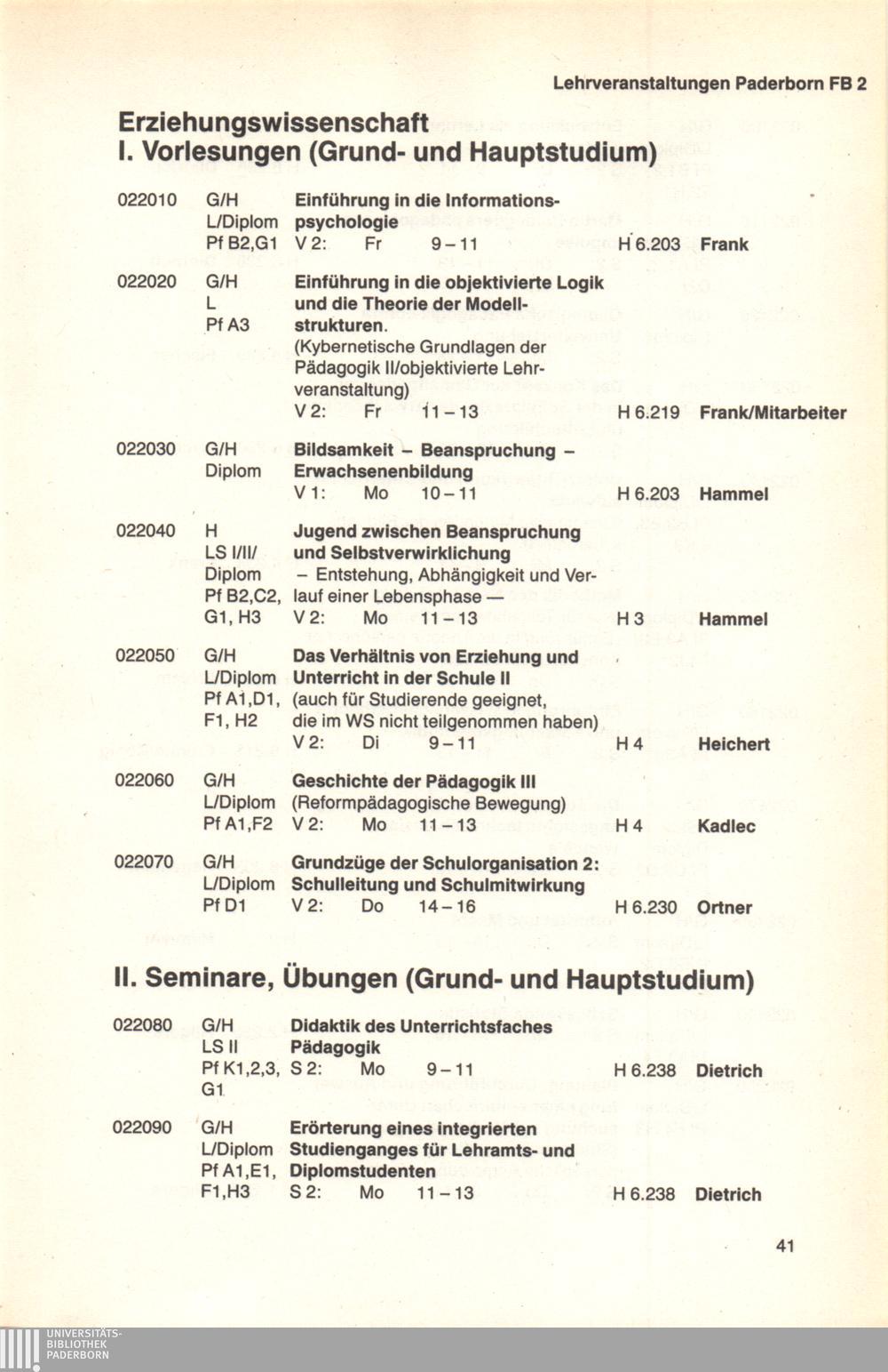 Personal- und Vorlesungsverzeichnis für die Universität Paderborn