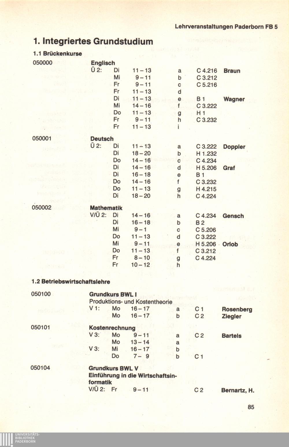 Personal- und Vorlesungsverzeichnis für die Universität Paderborn