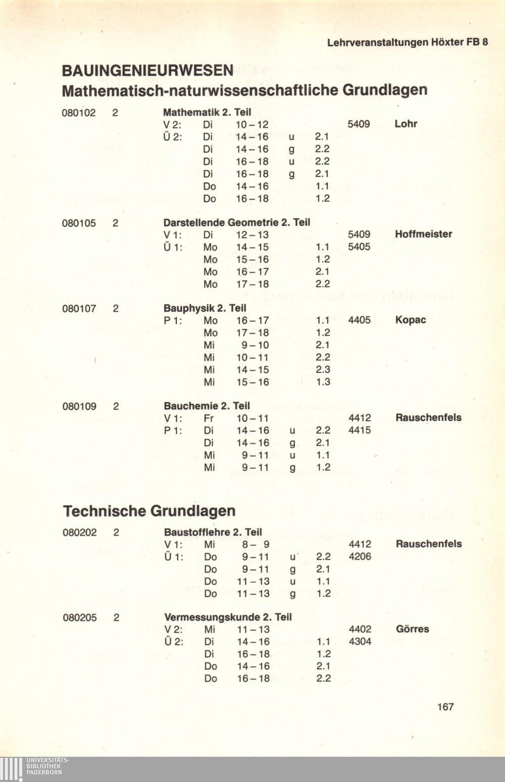Personal- und Vorlesungsverzeichnis für die Universität Paderborn