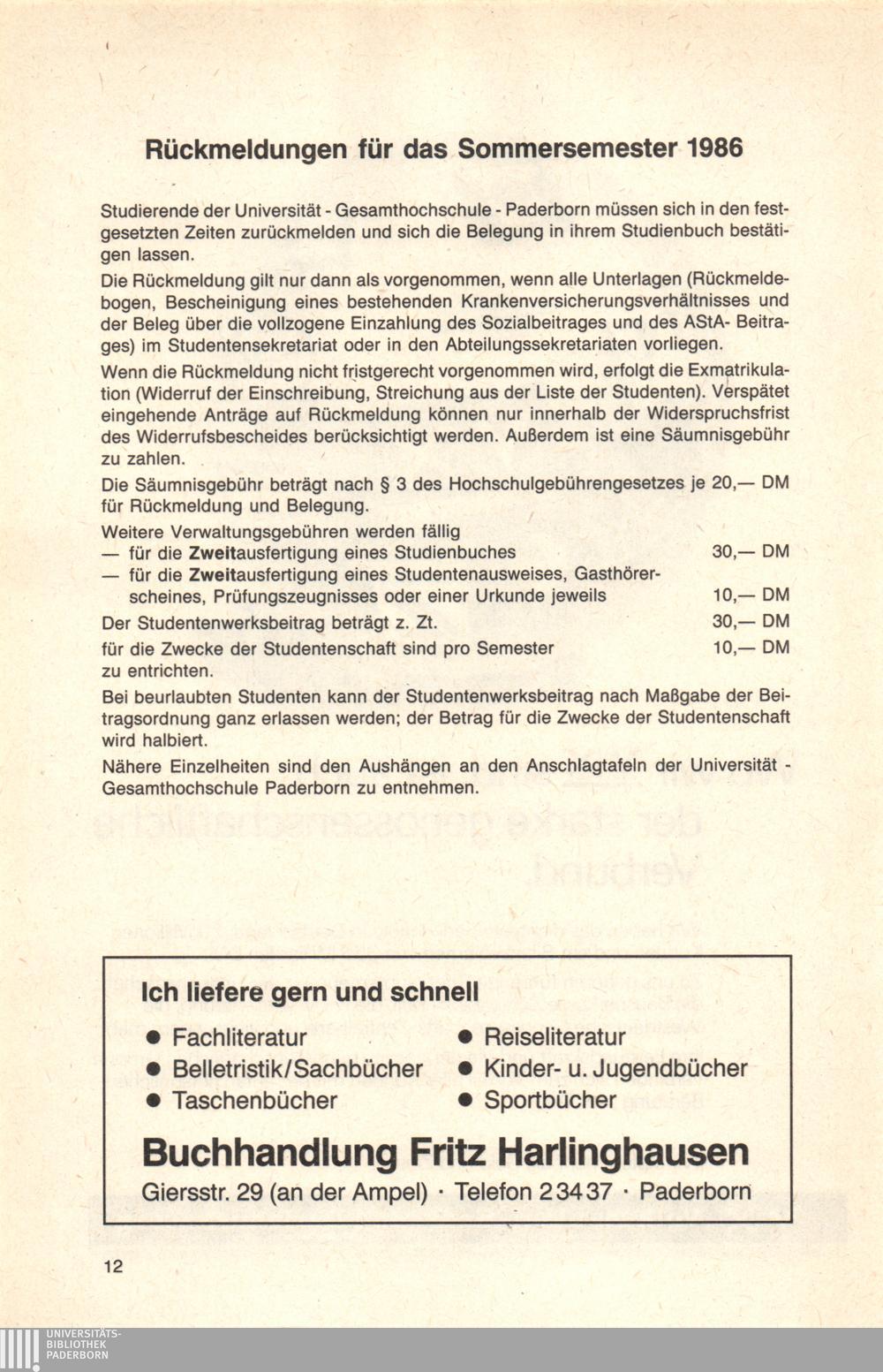 Personal- und Vorlesungsverzeichnis für die Universität Paderborn