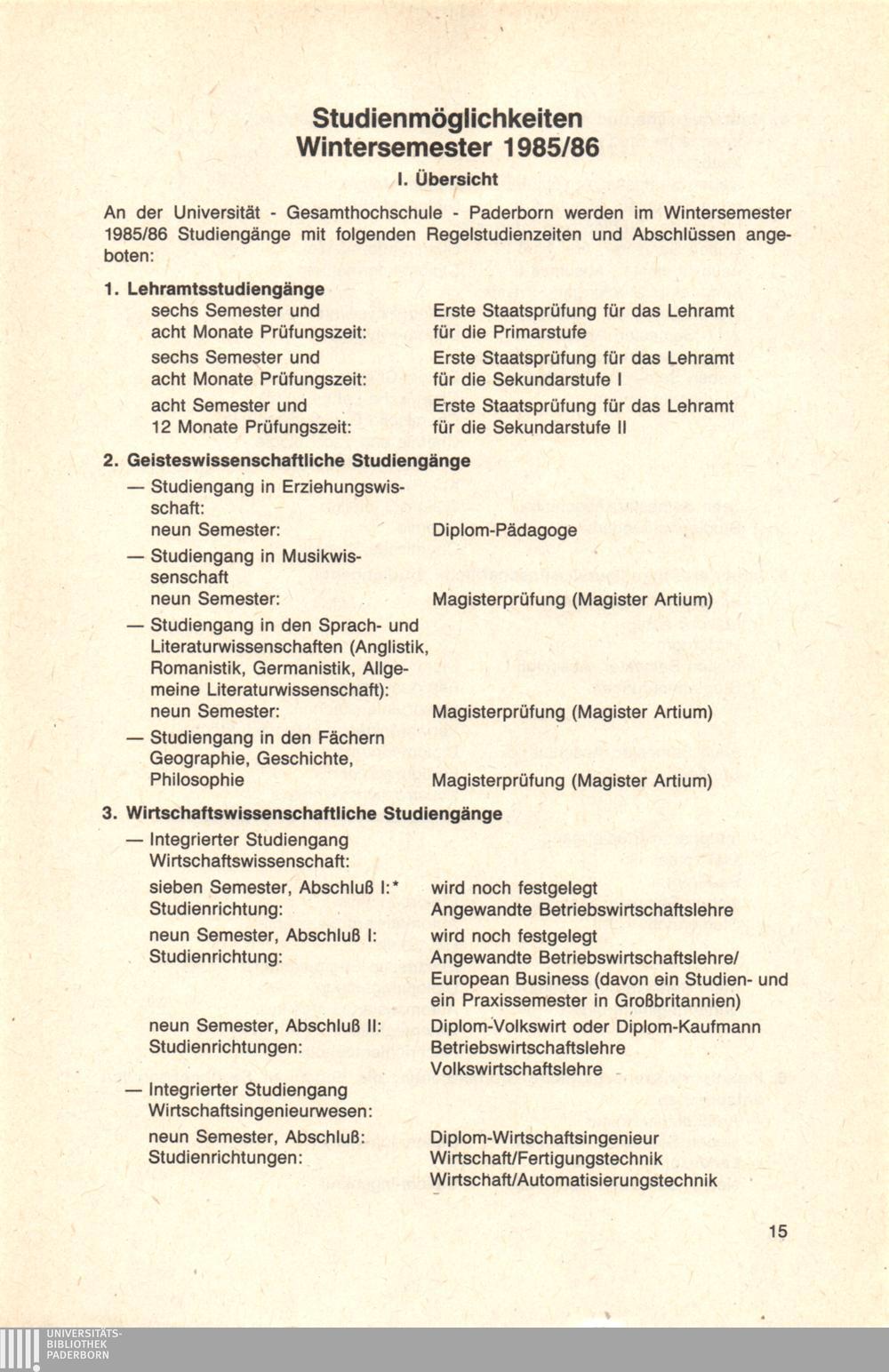 Personal- und Vorlesungsverzeichnis für die Universität Paderborn