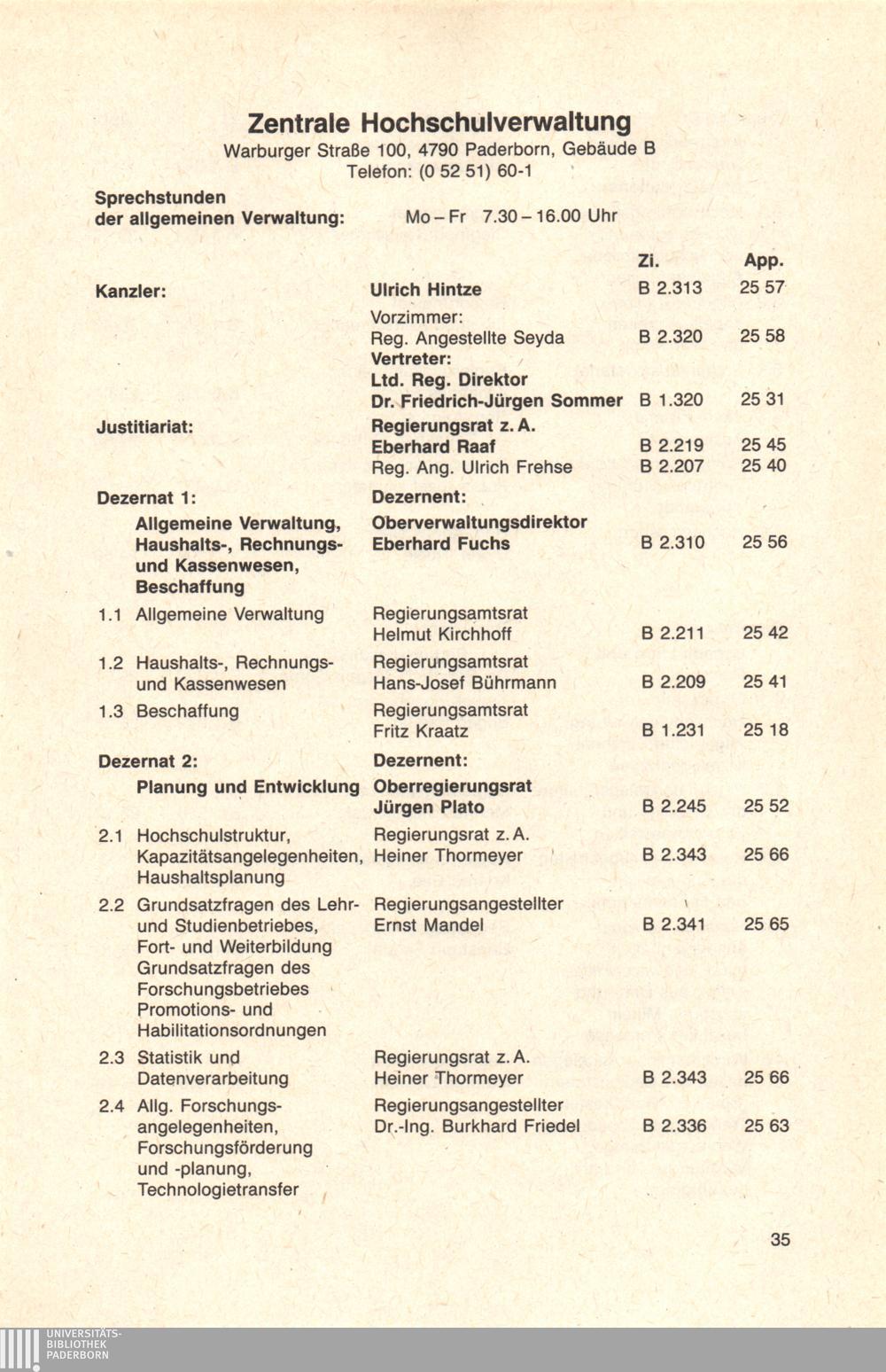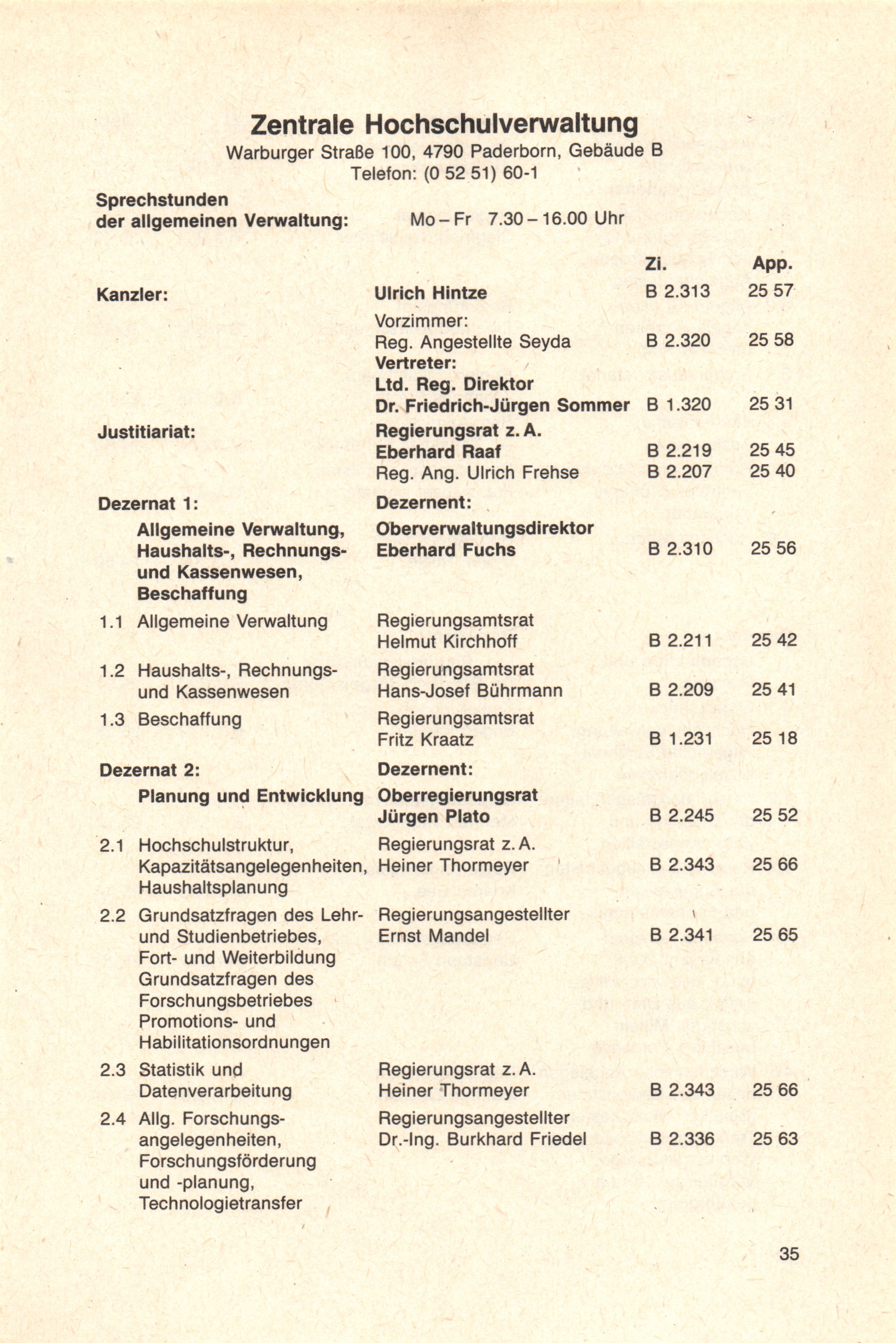 Personal- und Vorlesungsverzeichnis für die Universität Paderborn