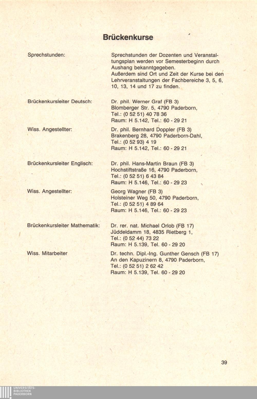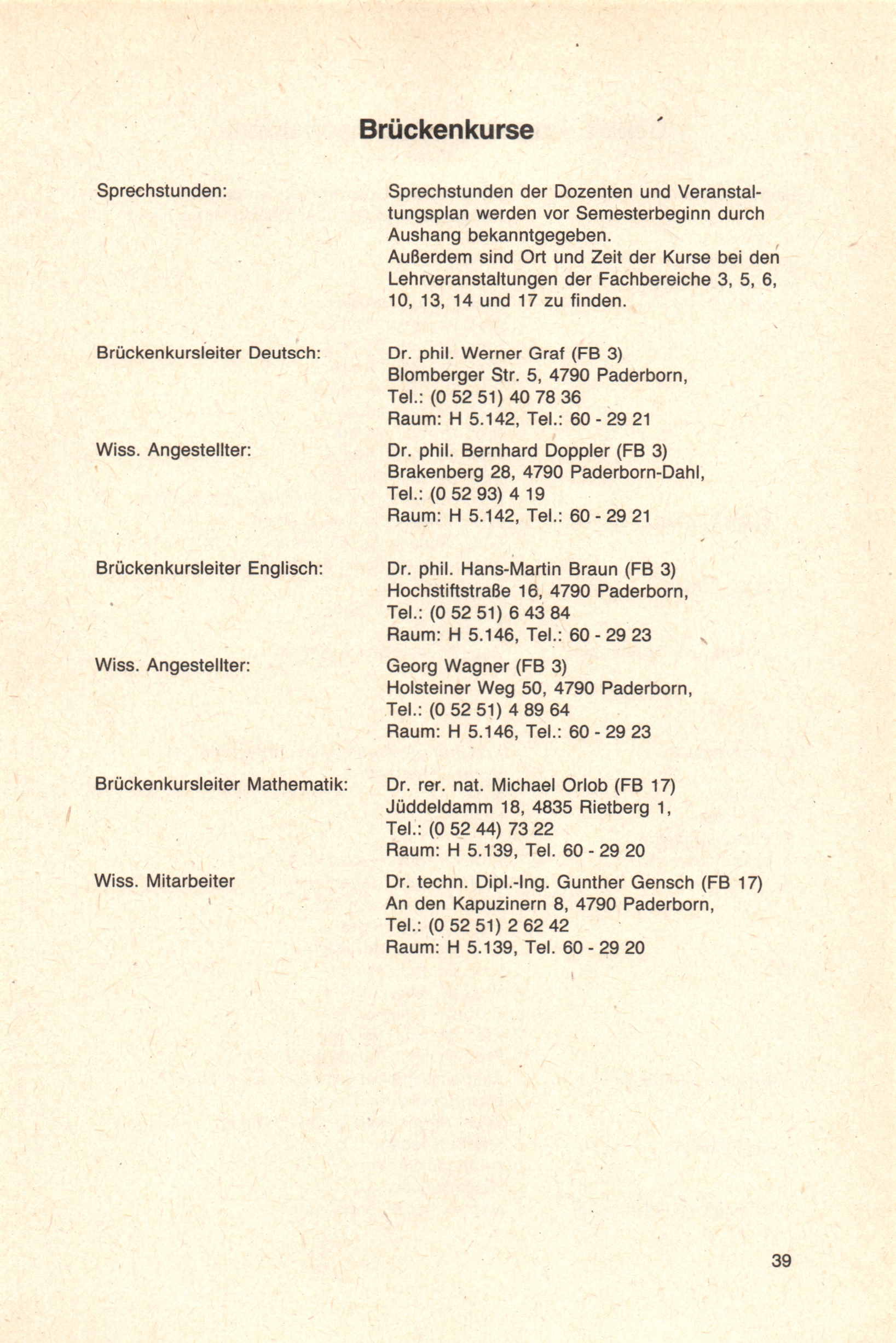Personal- und Vorlesungsverzeichnis für die Universität Paderborn