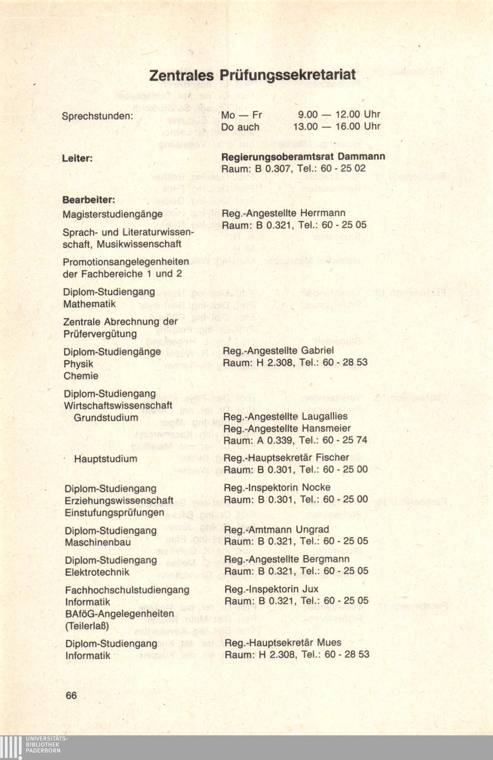Personal- und Vorlesungsverzeichnis für die Universität Paderborn