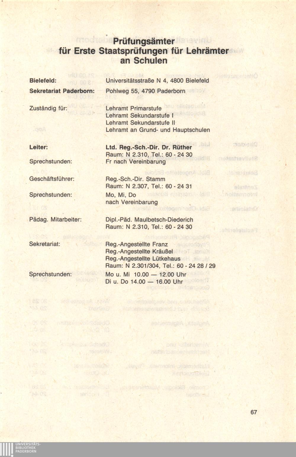 Personal- und Vorlesungsverzeichnis für die Universität Paderborn
