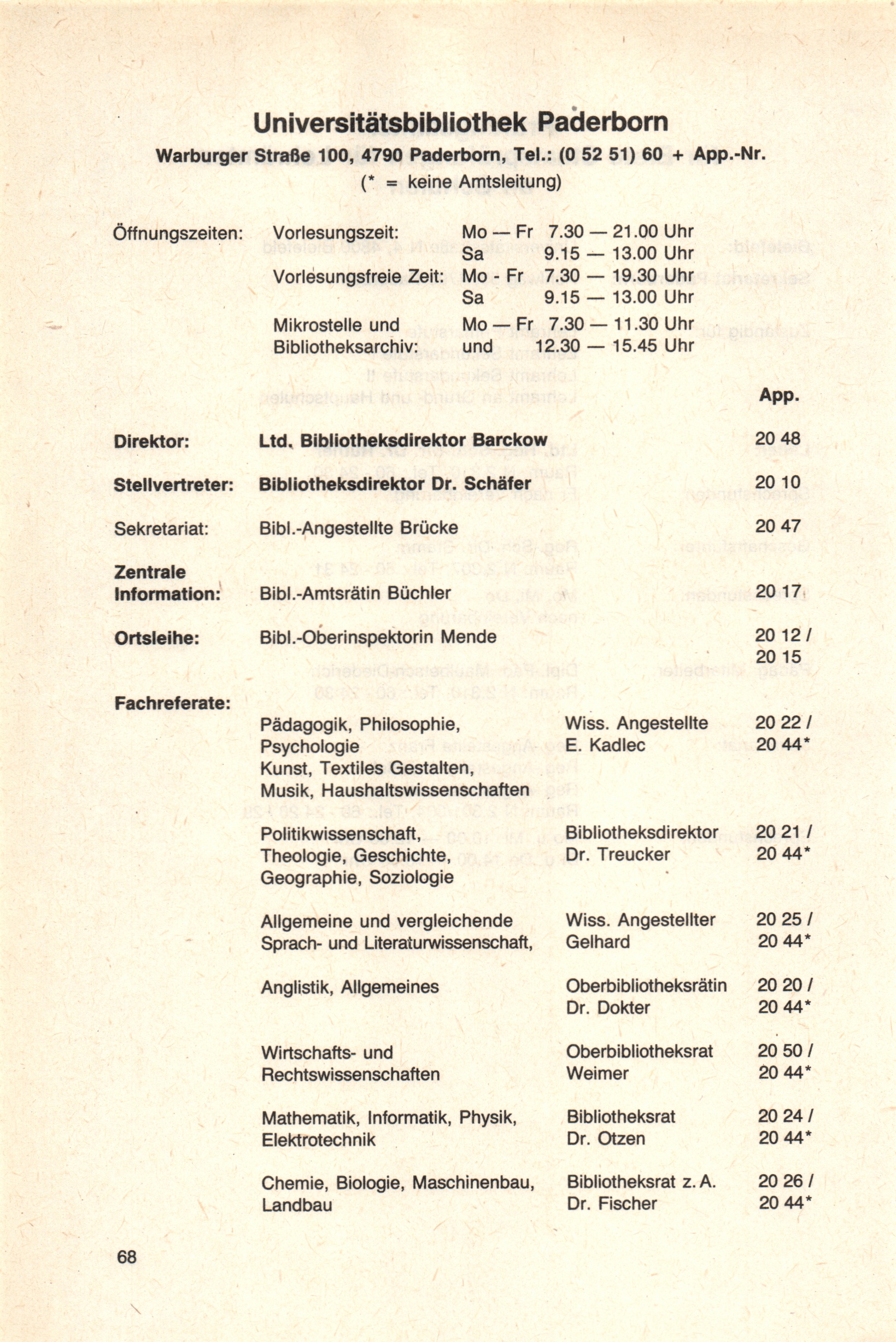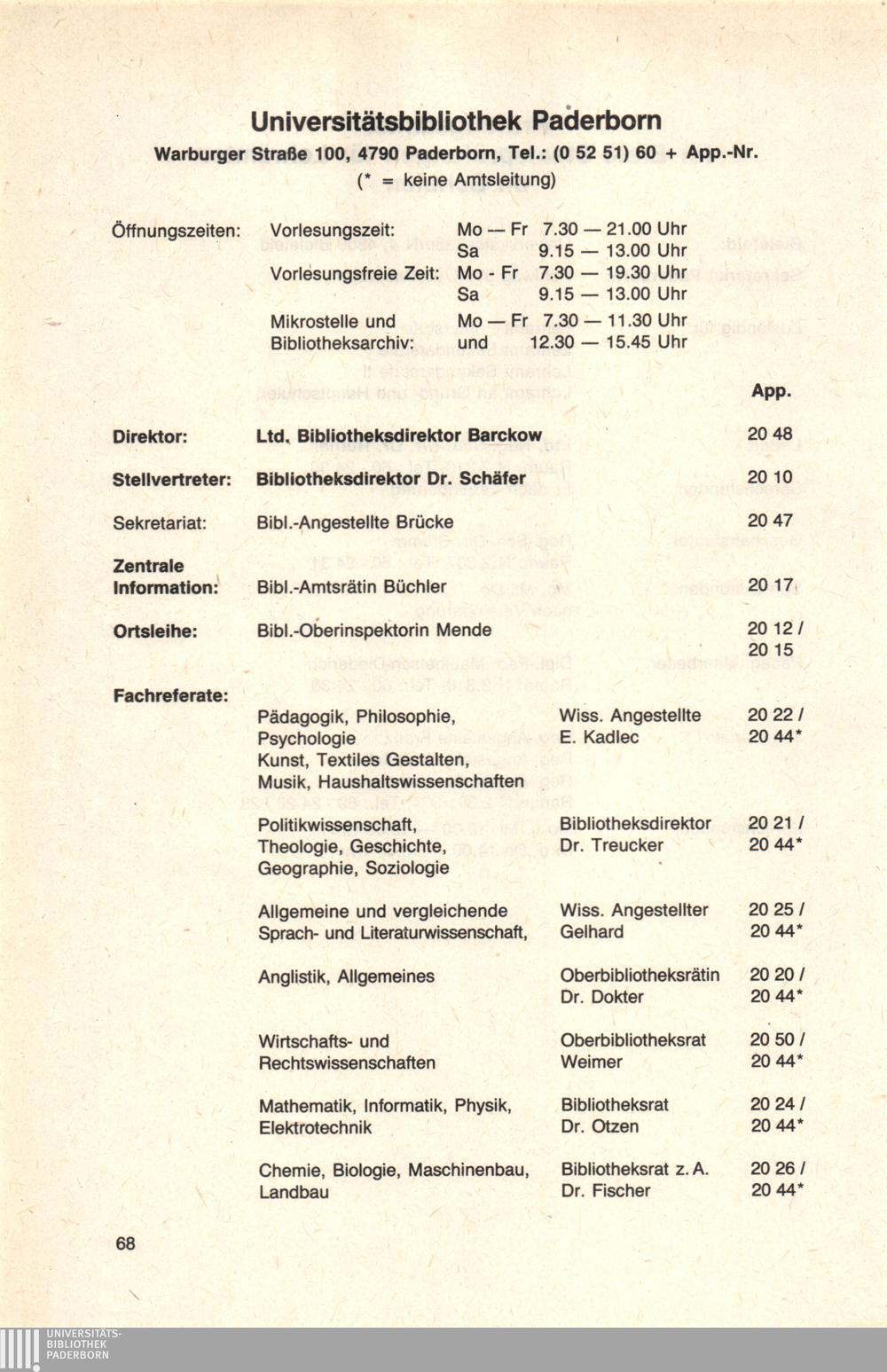 Personal- und Vorlesungsverzeichnis für die Universität Paderborn