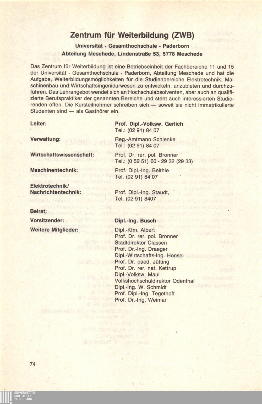 Personal- und Vorlesungsverzeichnis für die Universität Paderborn