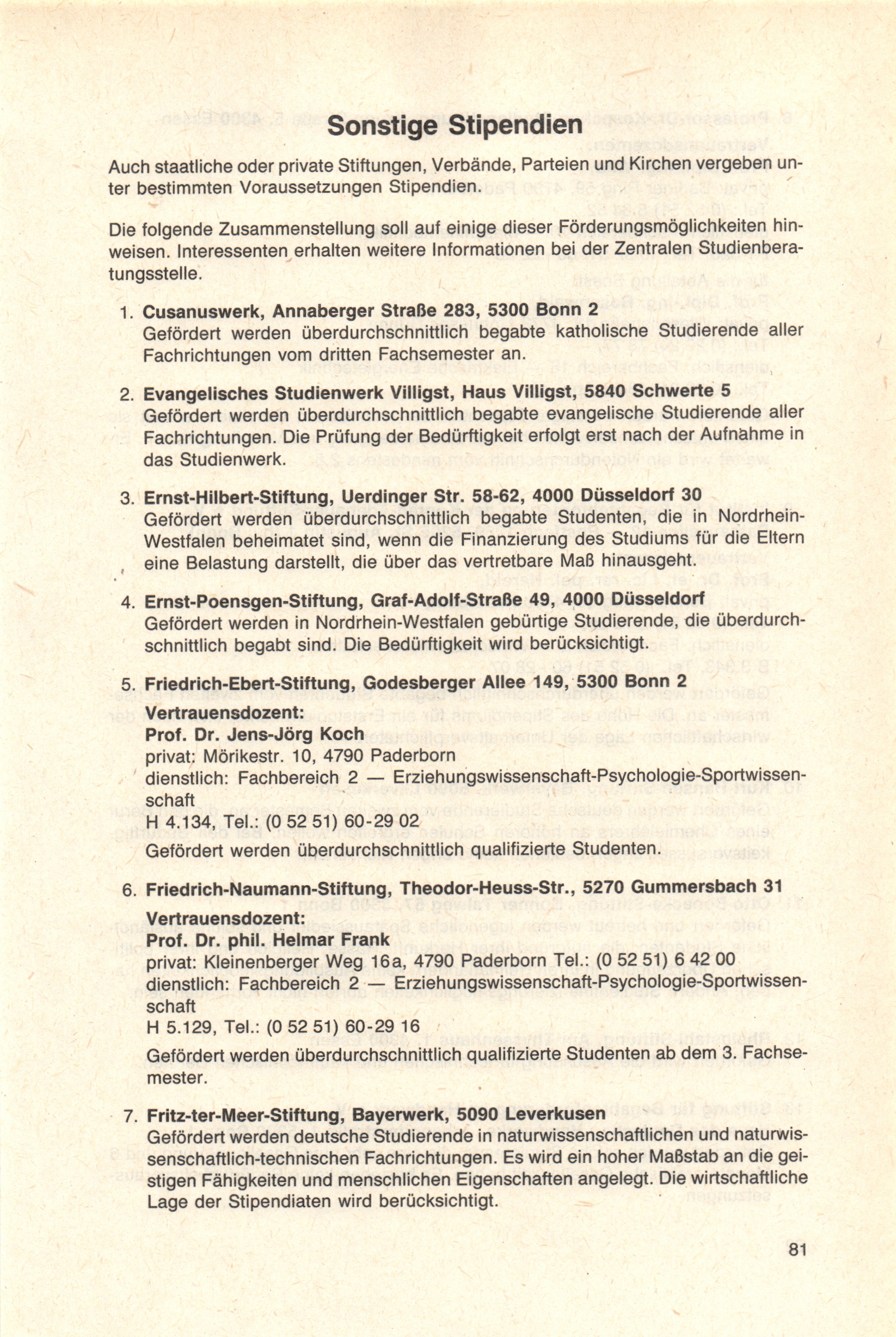 Sonstige Stipendien