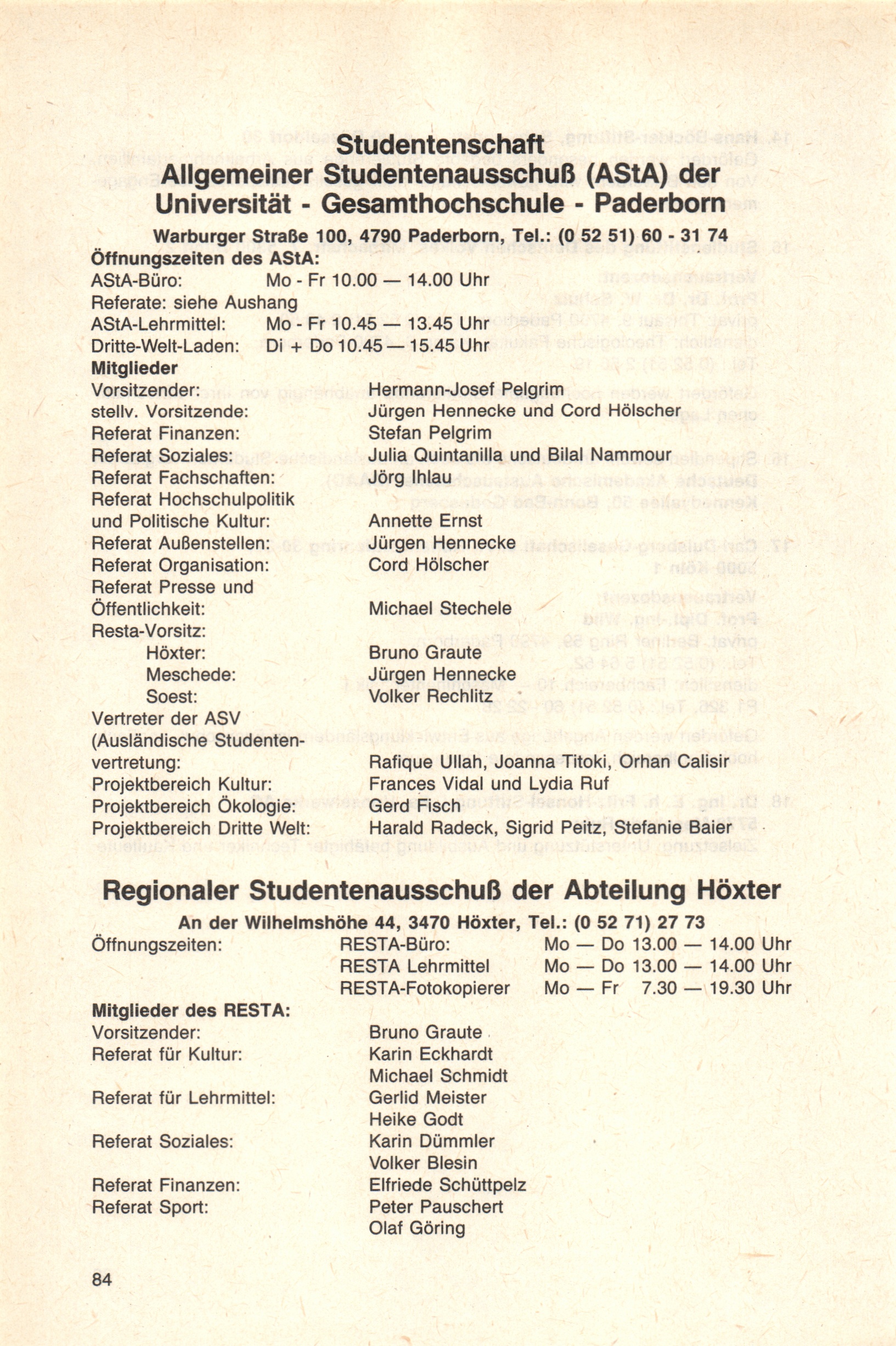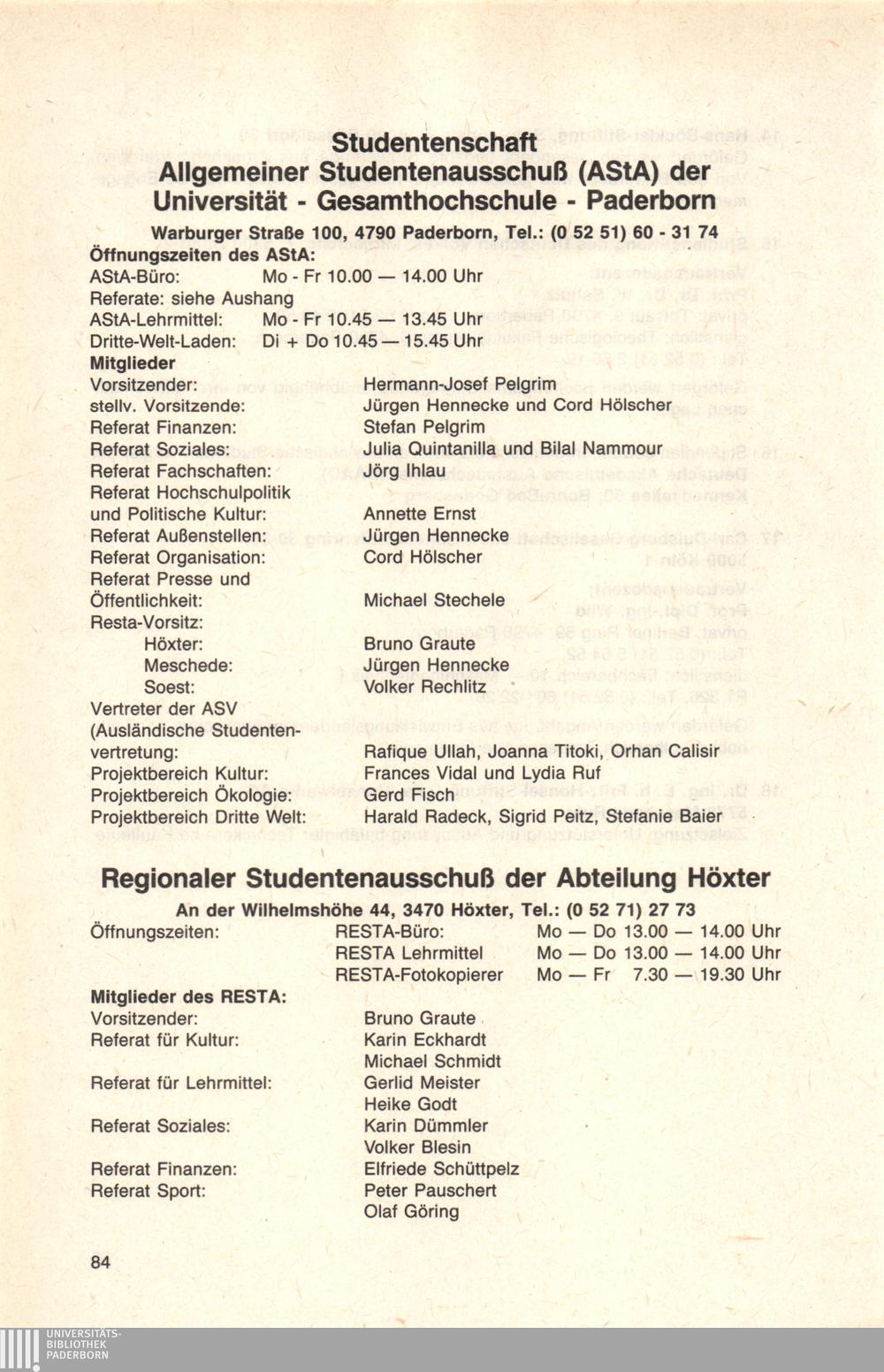 Personal- und Vorlesungsverzeichnis für die Universität Paderborn