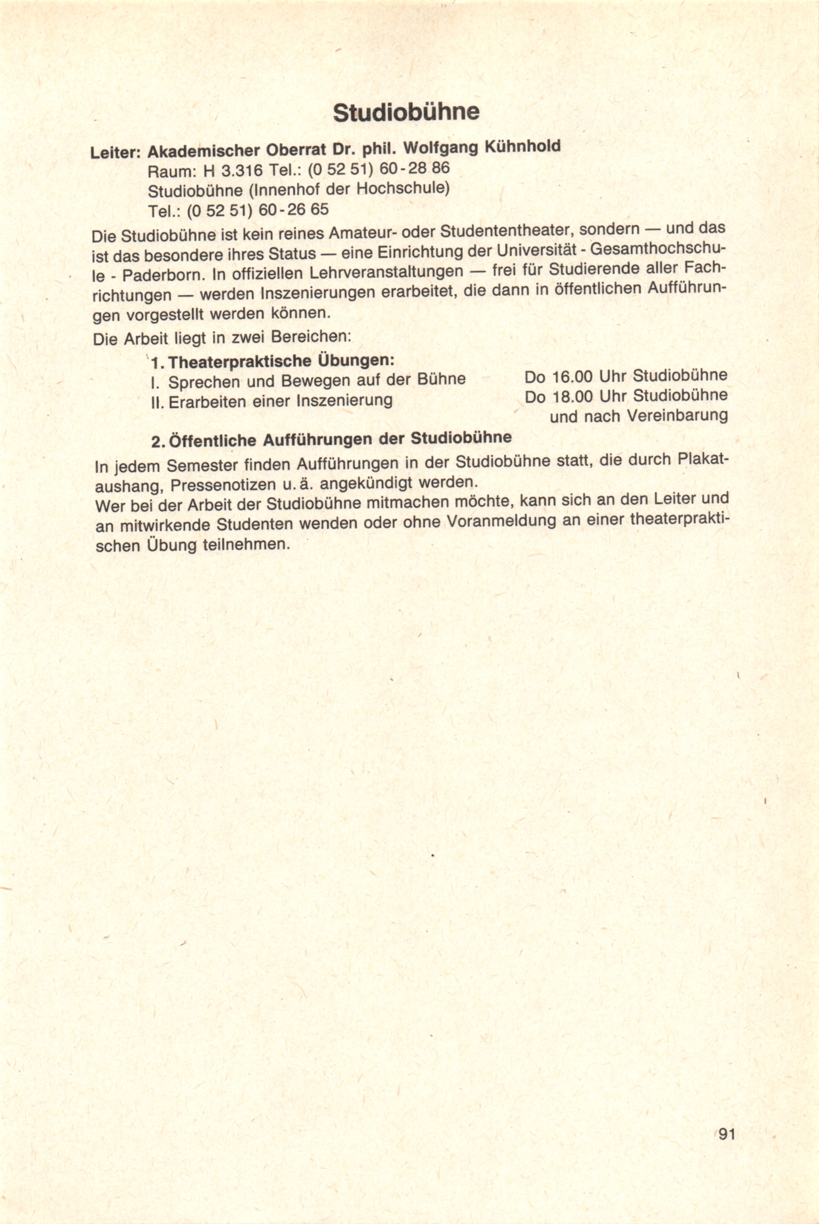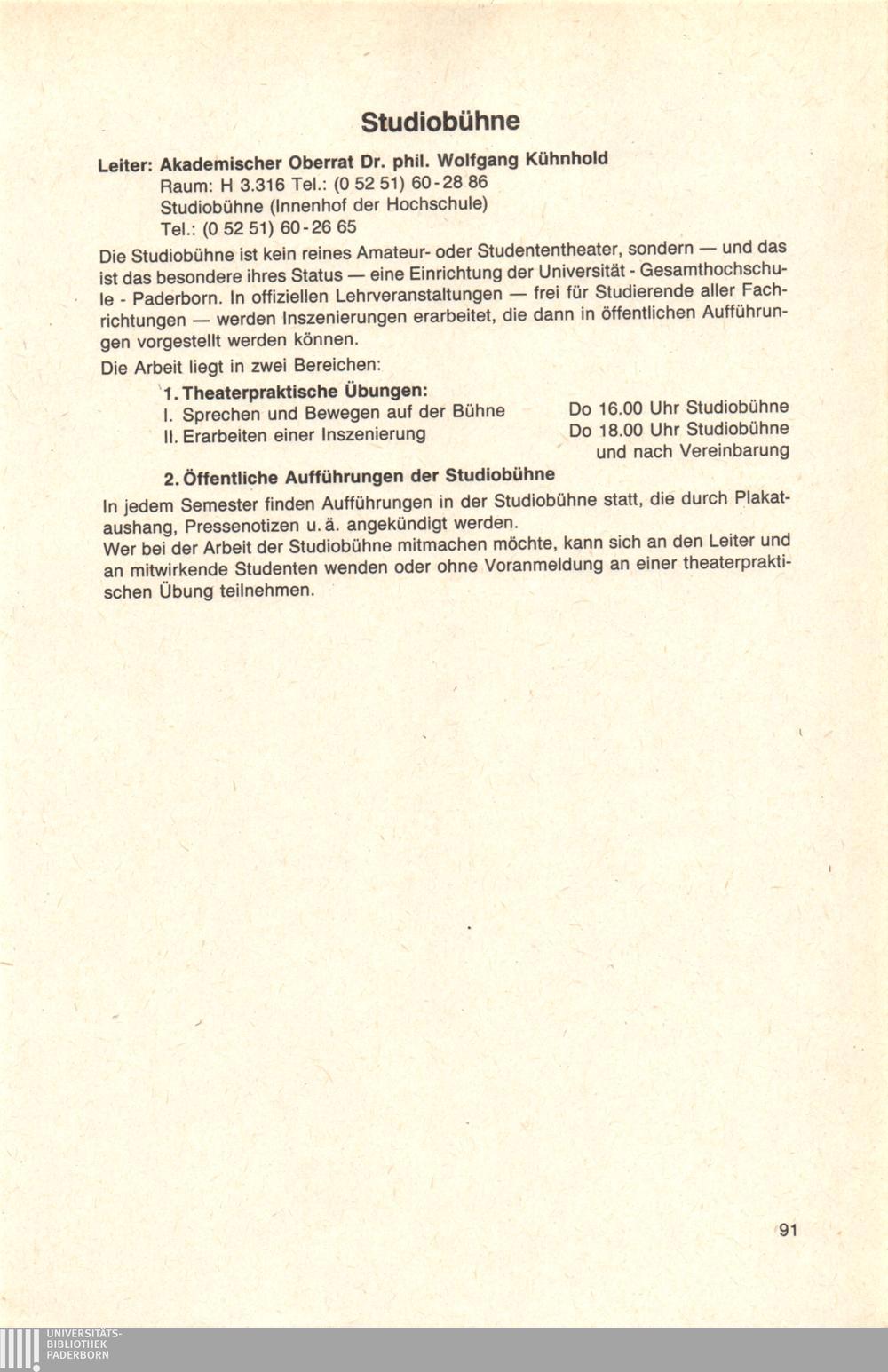 Personal- und Vorlesungsverzeichnis für die Universität Paderborn