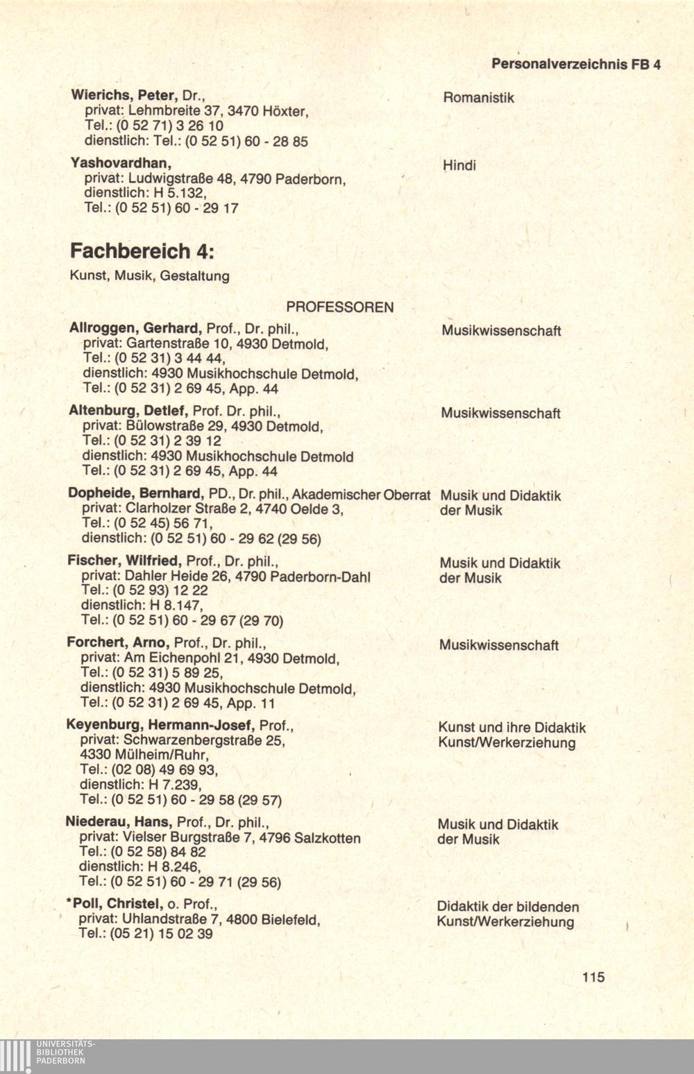 Personal- und Vorlesungsverzeichnis für die Universität Paderborn