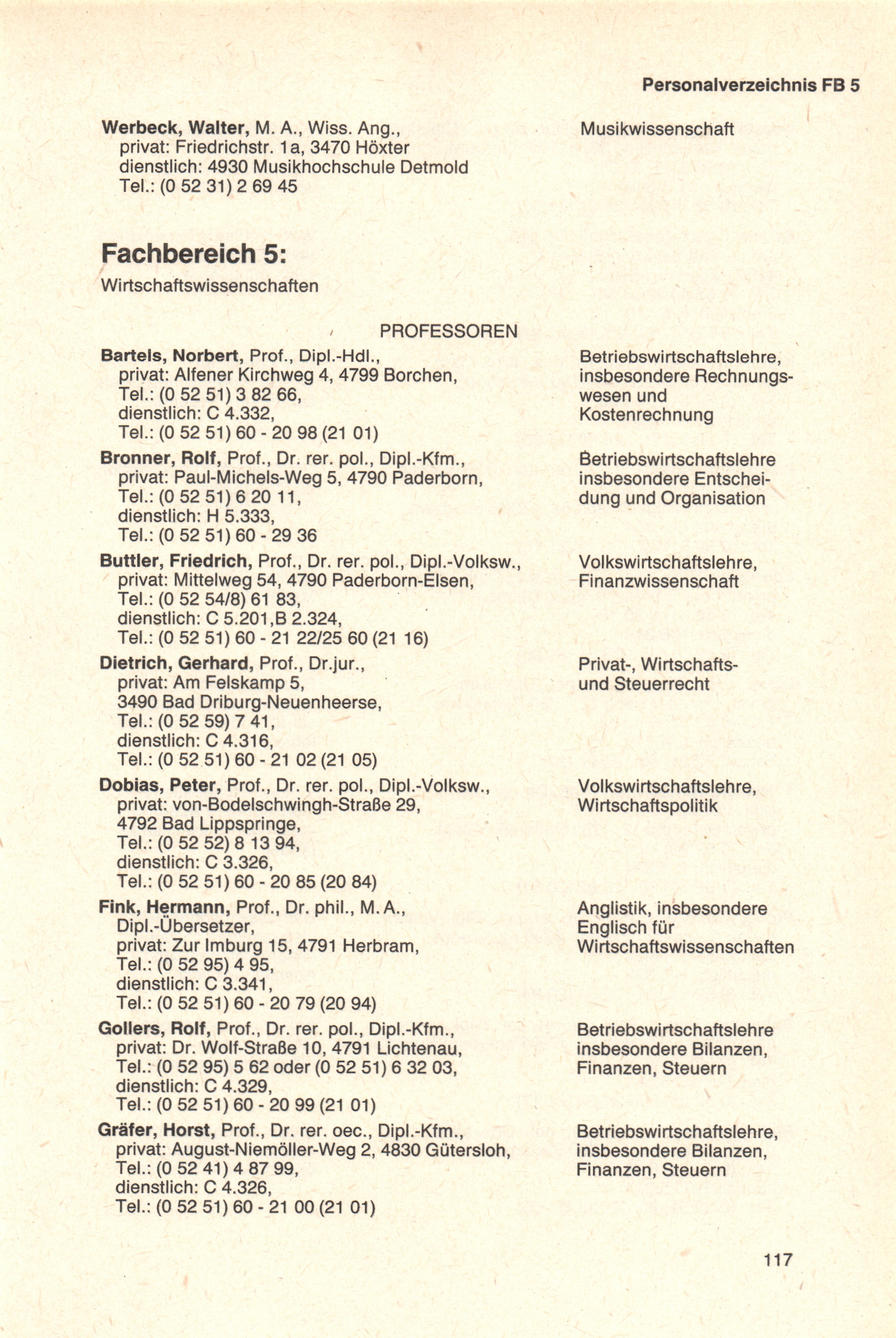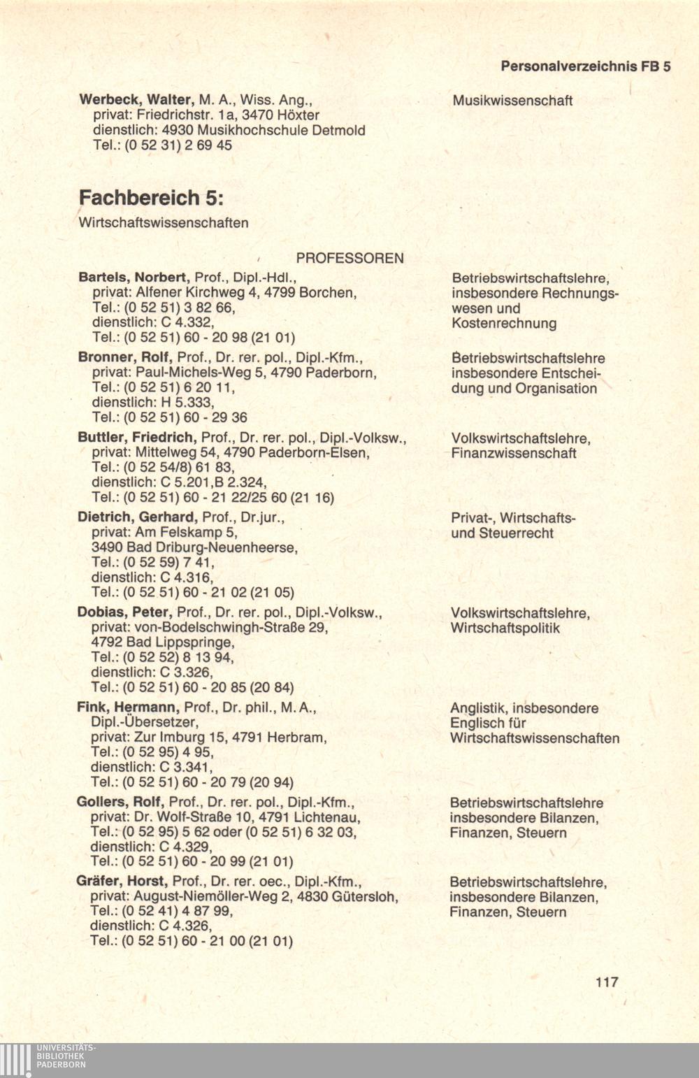 Personal- und Vorlesungsverzeichnis für die Universität Paderborn