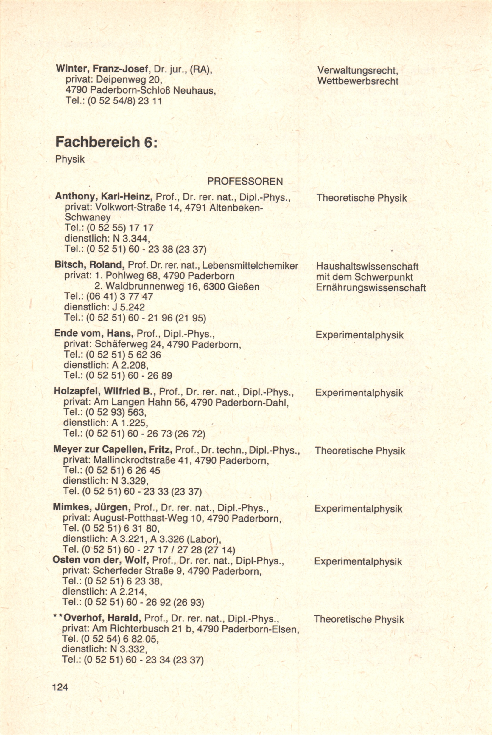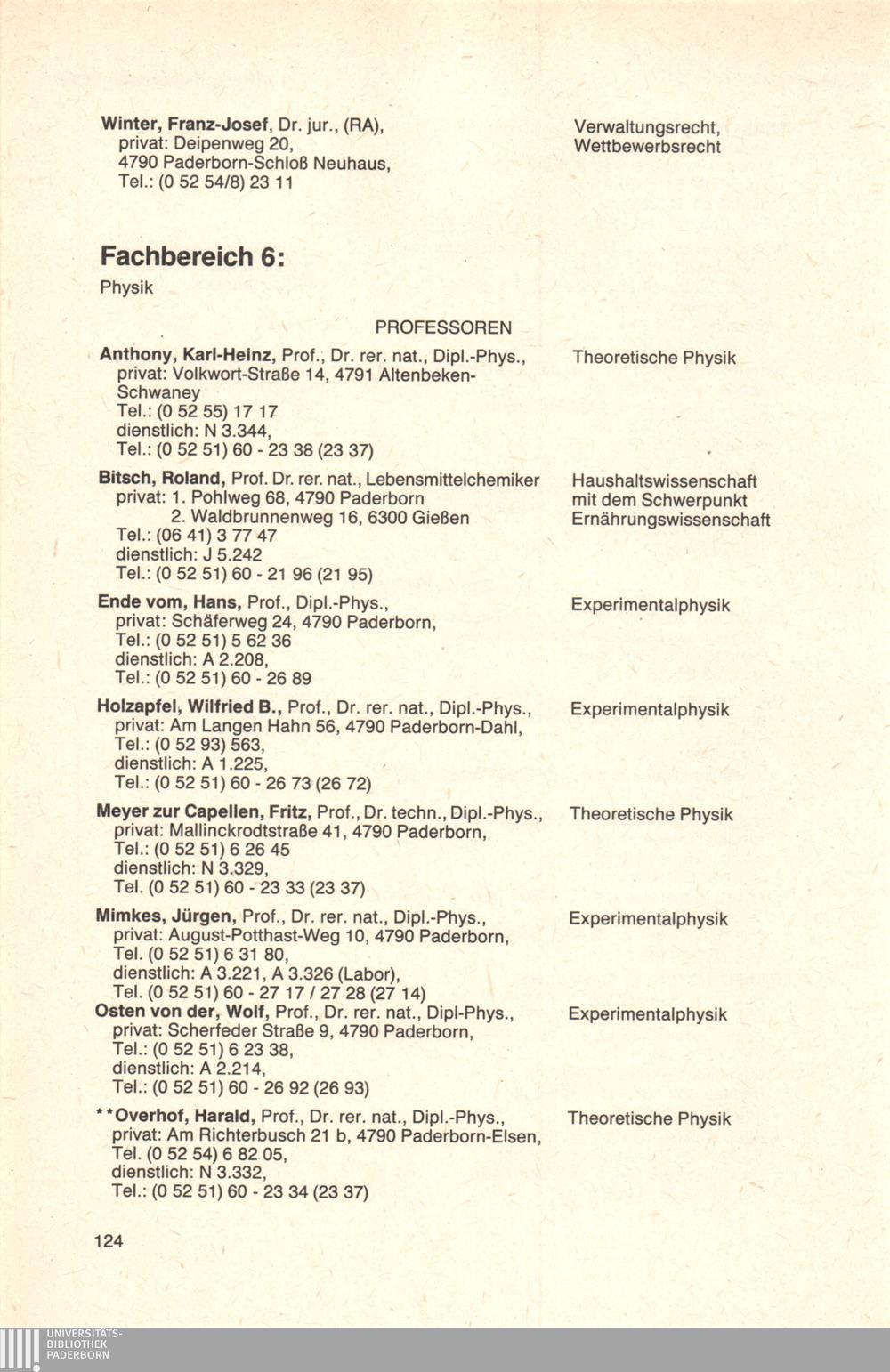Personal- und Vorlesungsverzeichnis für die Universität Paderborn