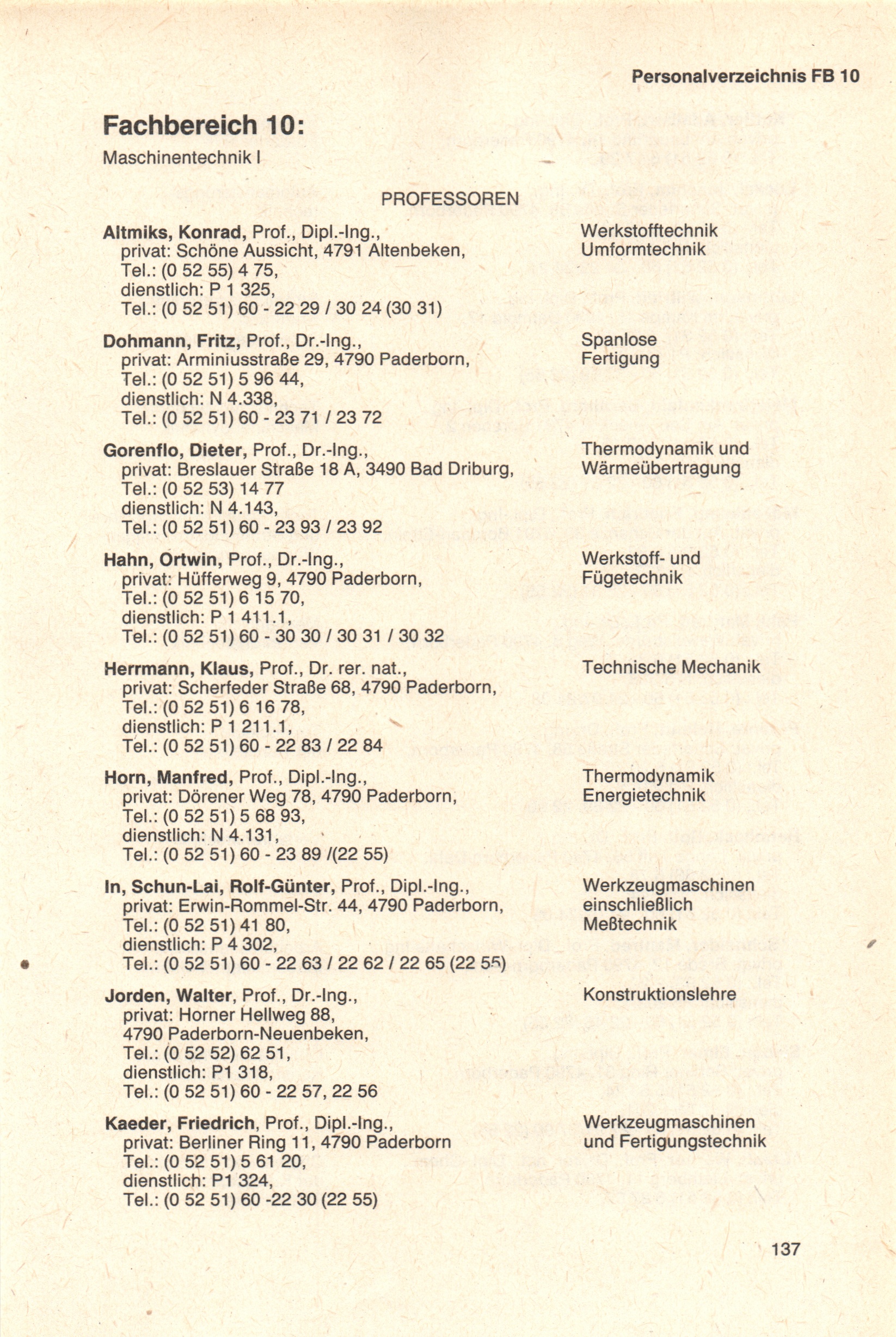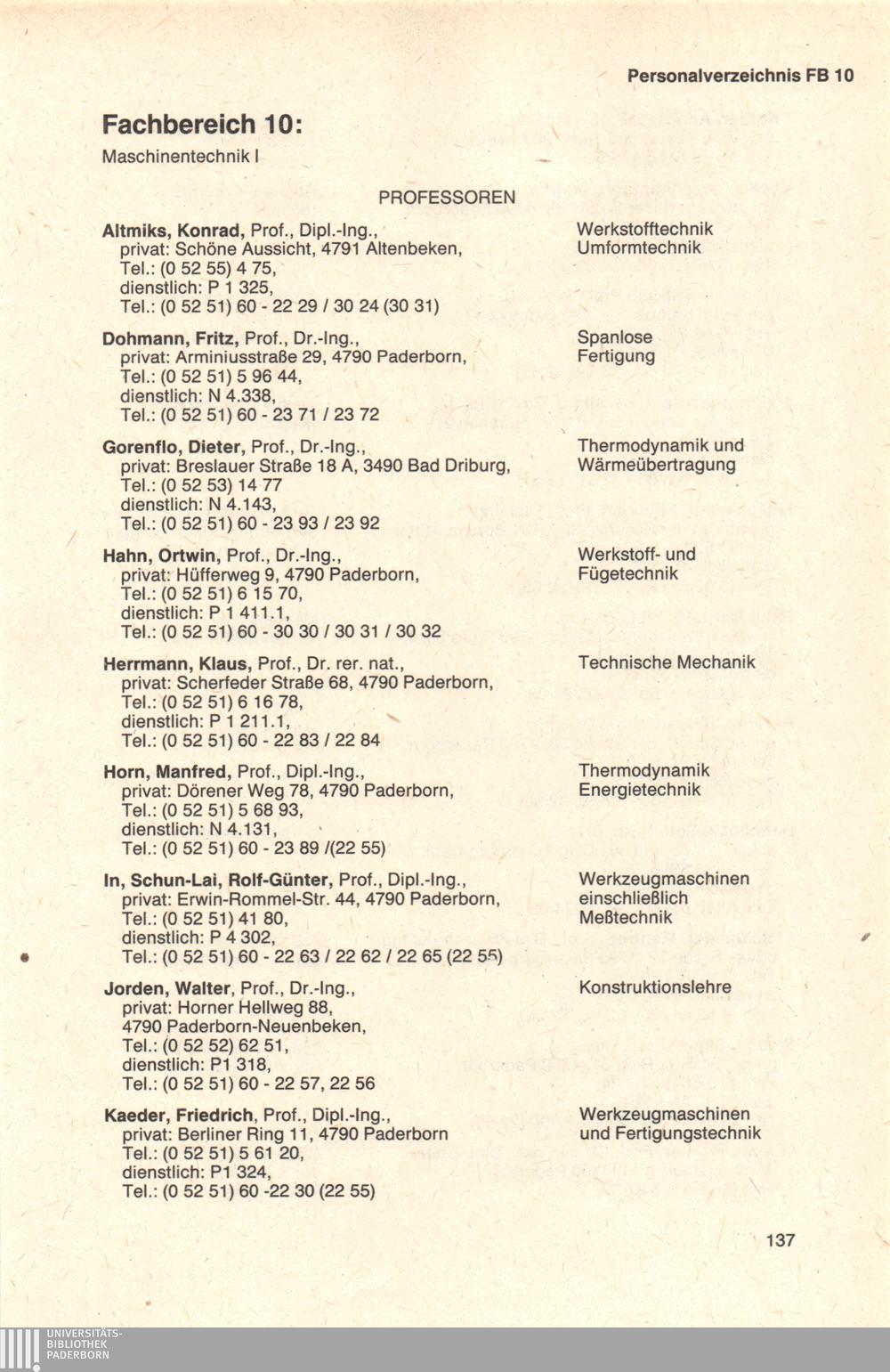 Personal- und Vorlesungsverzeichnis für die Universität Paderborn