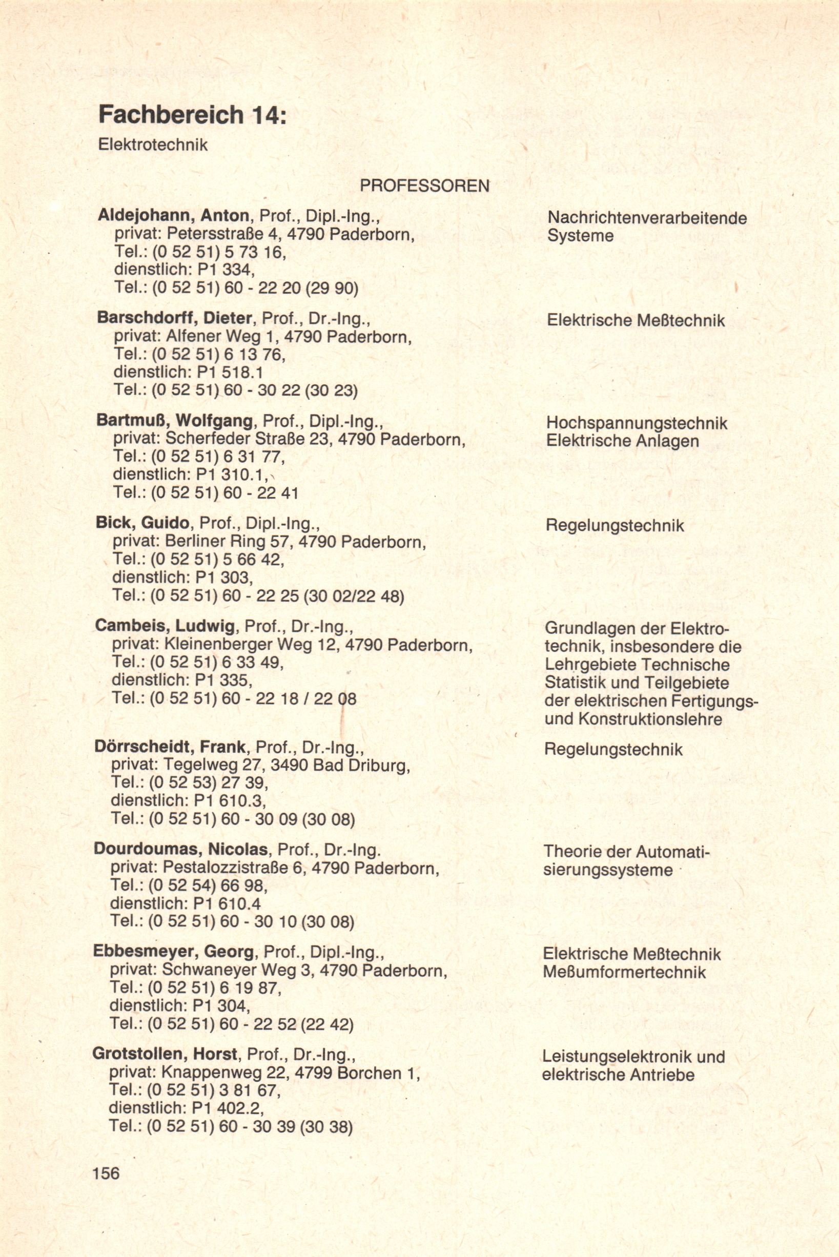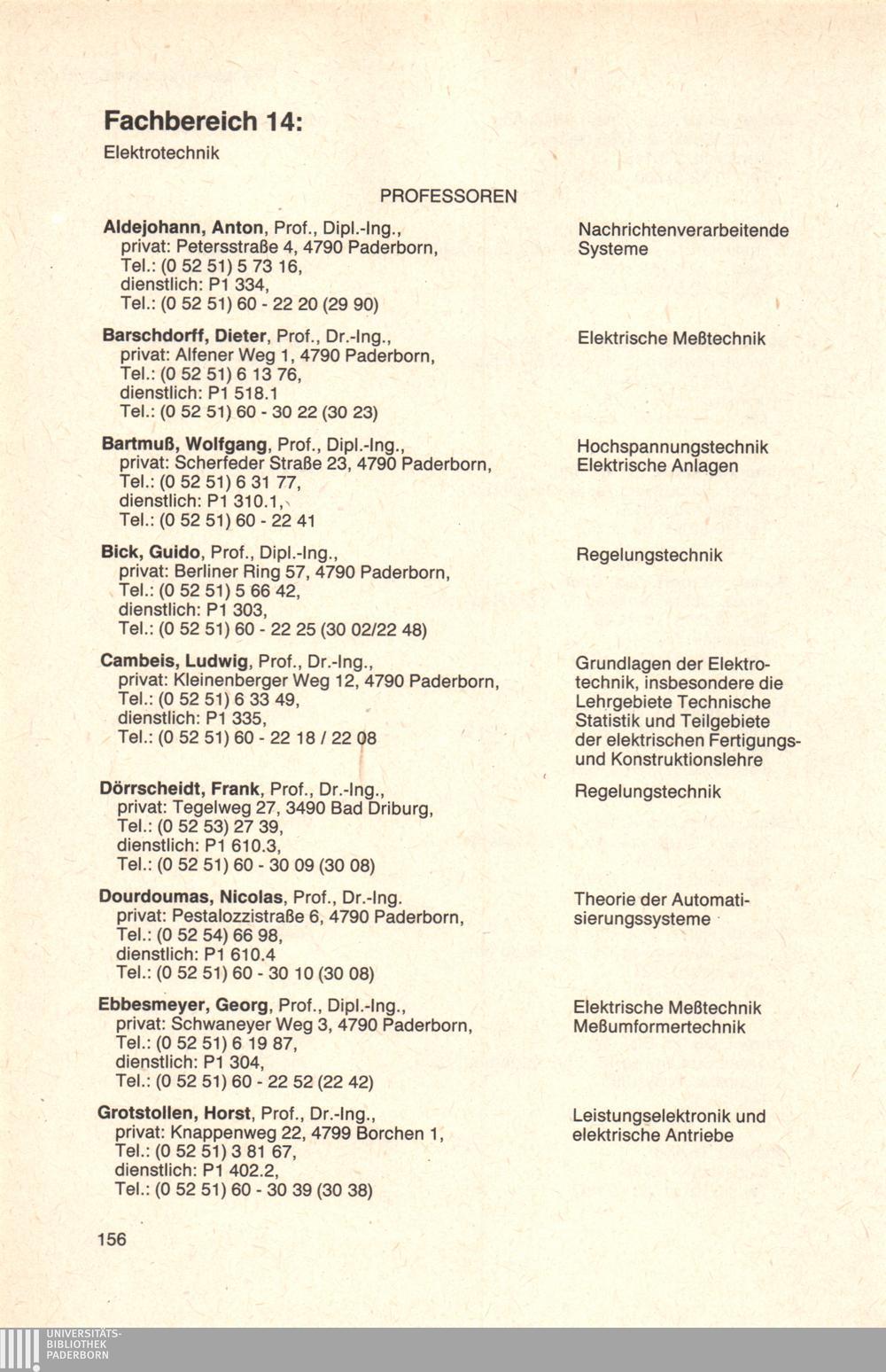 Personal- und Vorlesungsverzeichnis für die Universität Paderborn