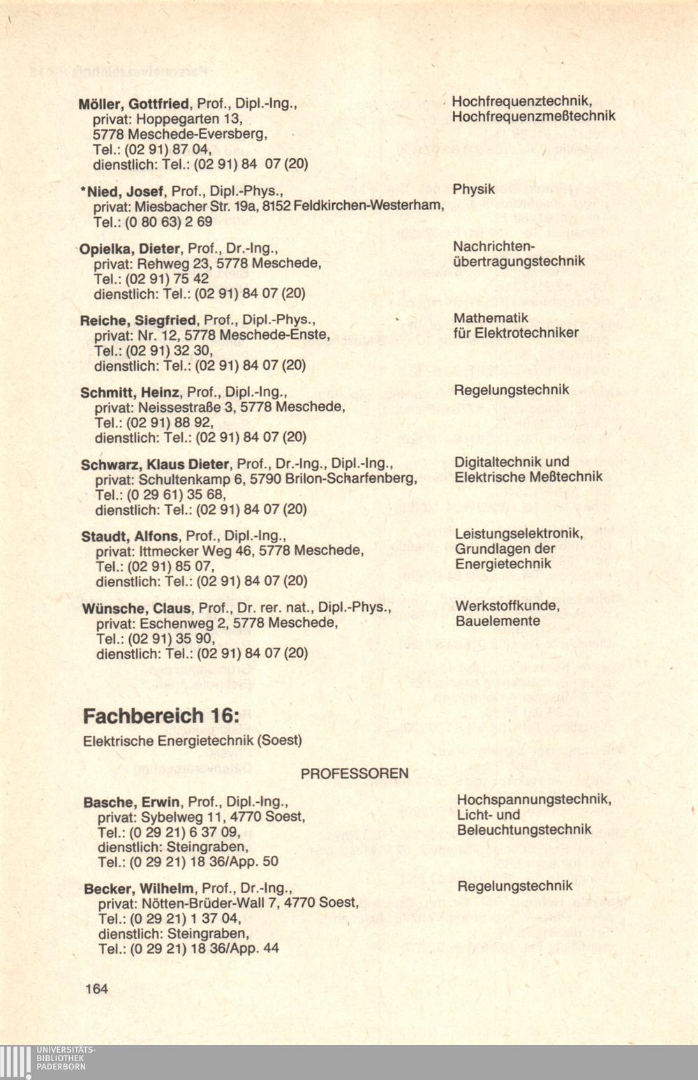 Fachbereich 16: Elektrische Energietechnik (Soest)