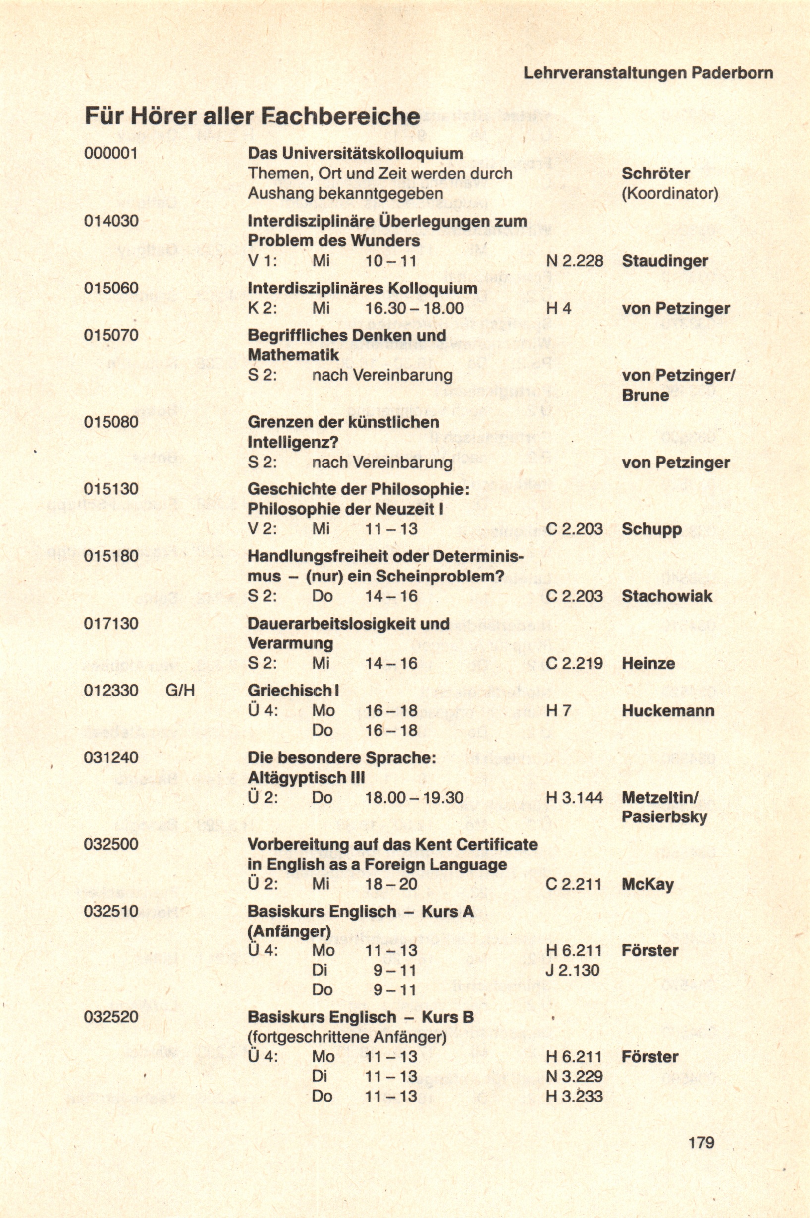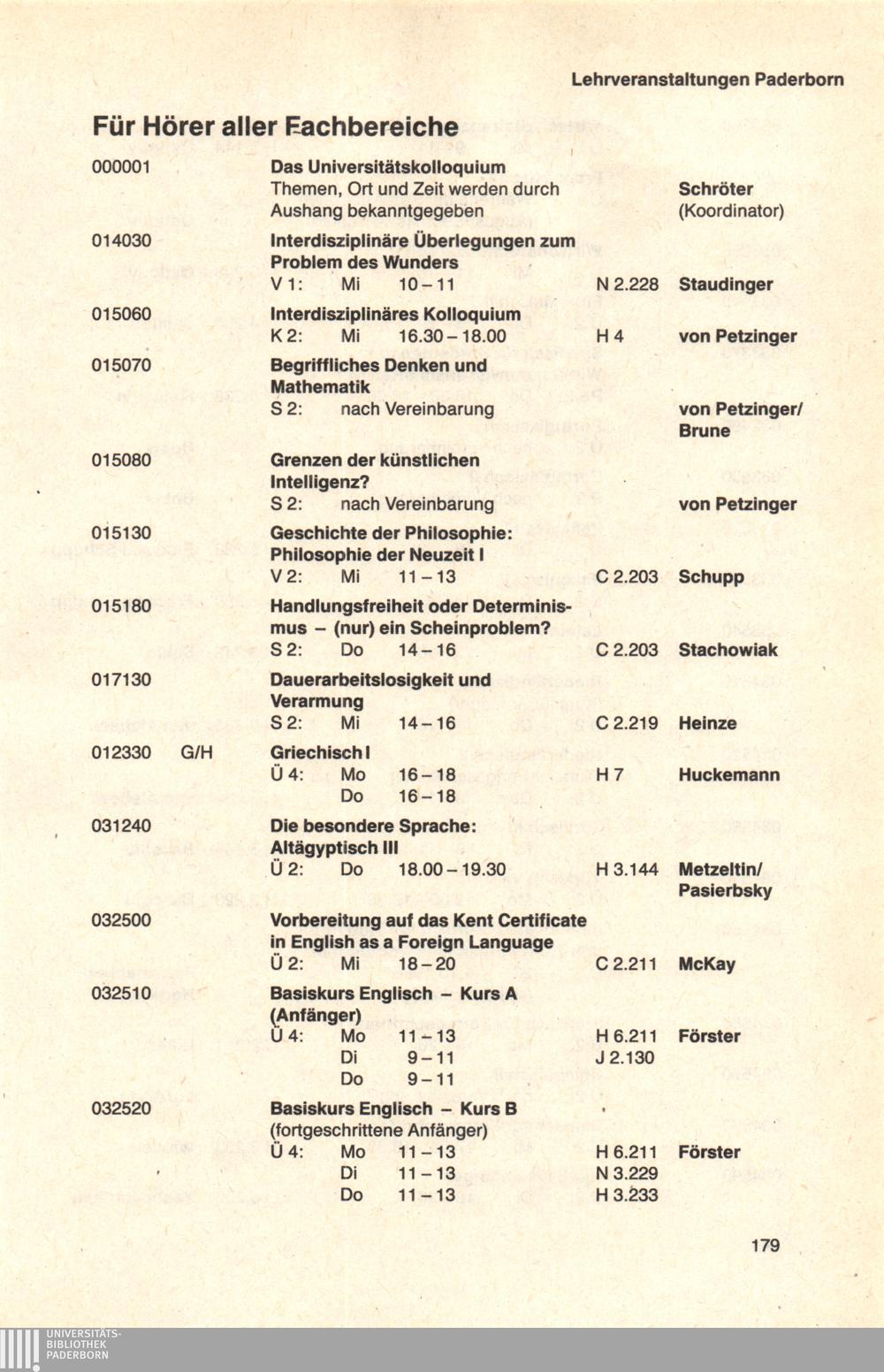 Personal- und Vorlesungsverzeichnis für die Universität Paderborn