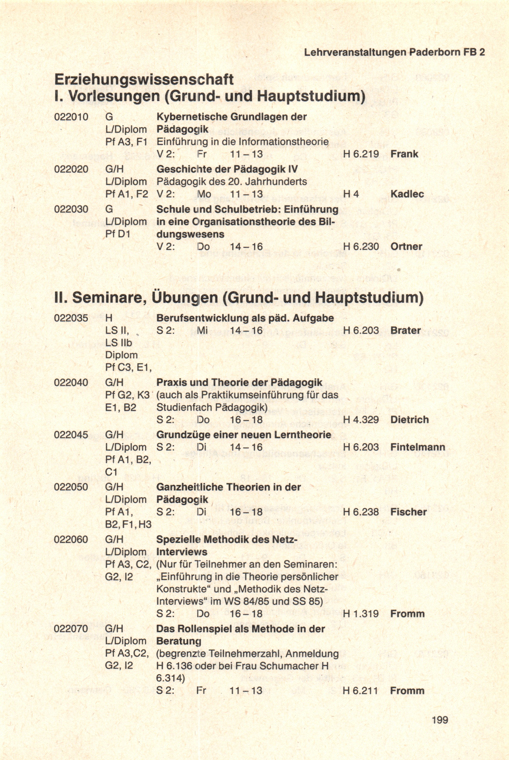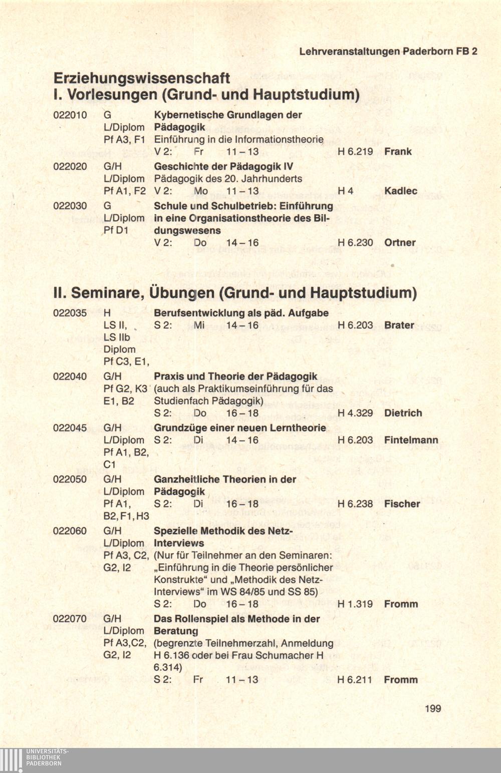 Personal- und Vorlesungsverzeichnis für die Universität Paderborn