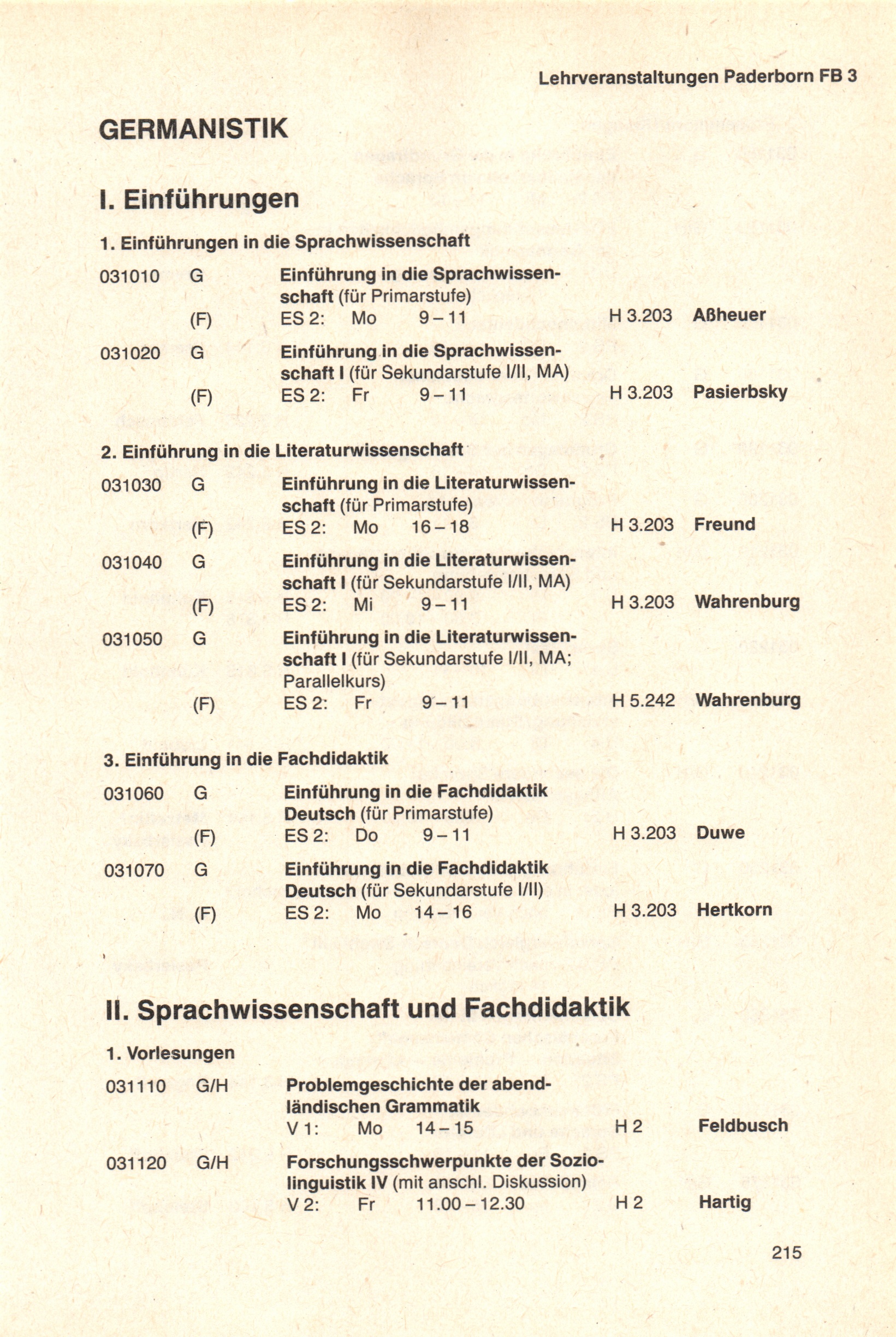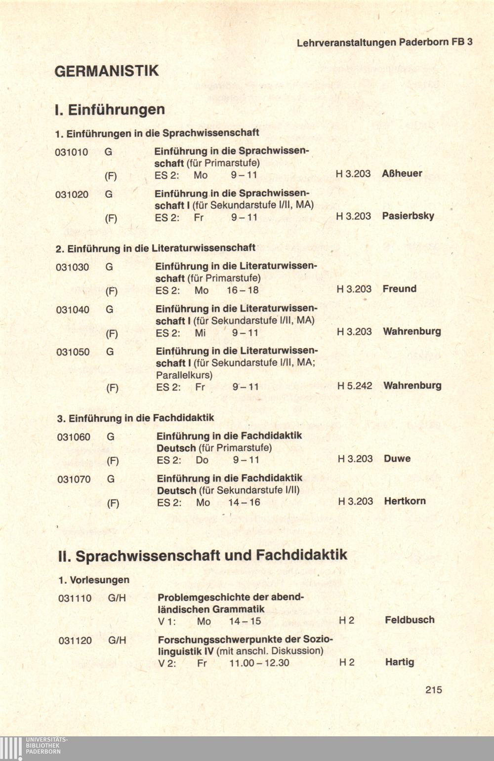 Personal- und Vorlesungsverzeichnis für die Universität Paderborn