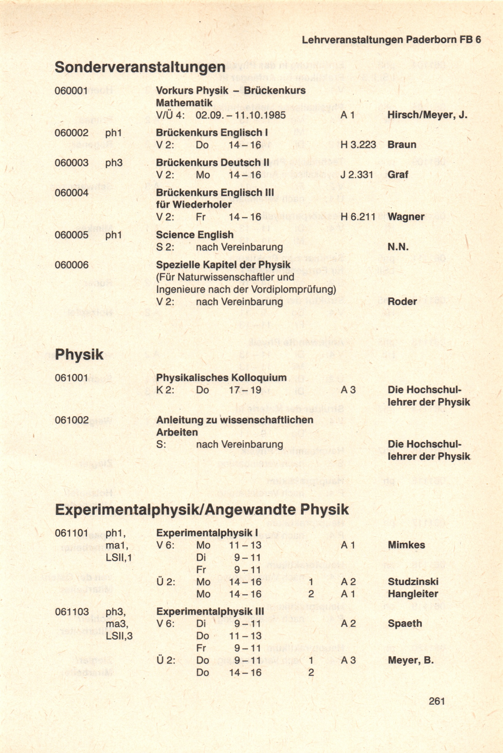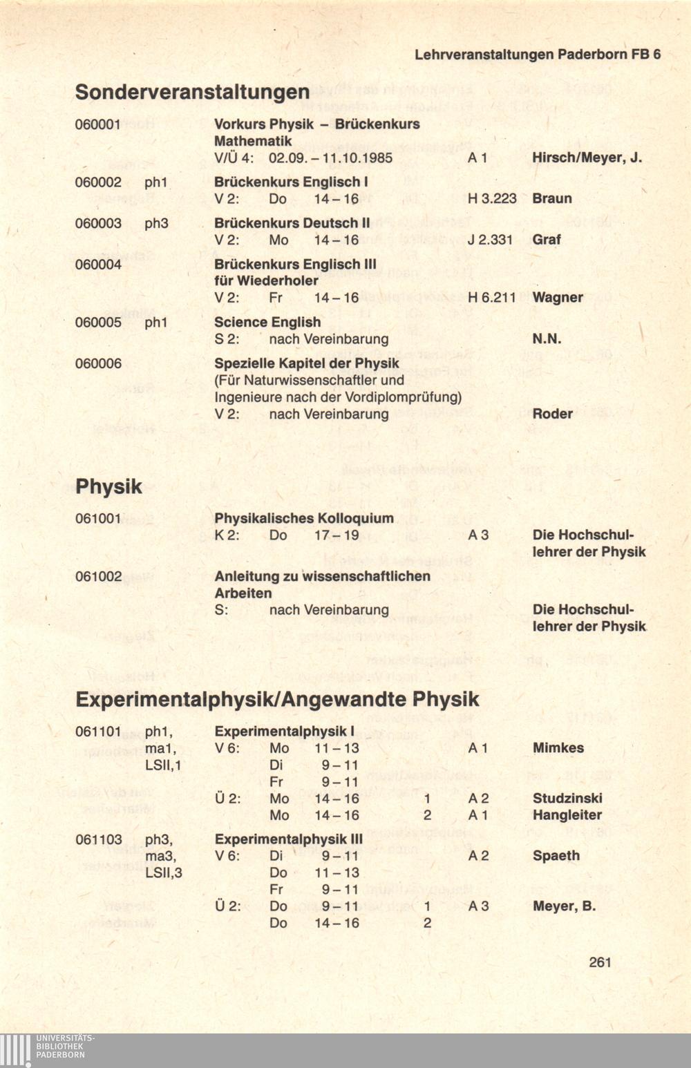 Personal- und Vorlesungsverzeichnis für die Universität Paderborn