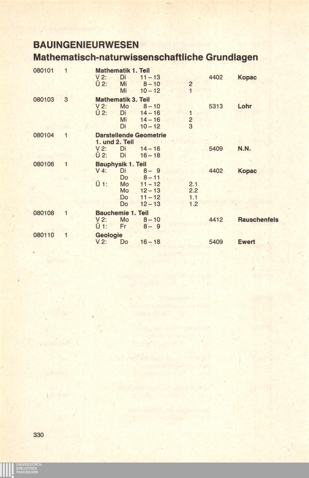 Personal- und Vorlesungsverzeichnis für die Universität Paderborn