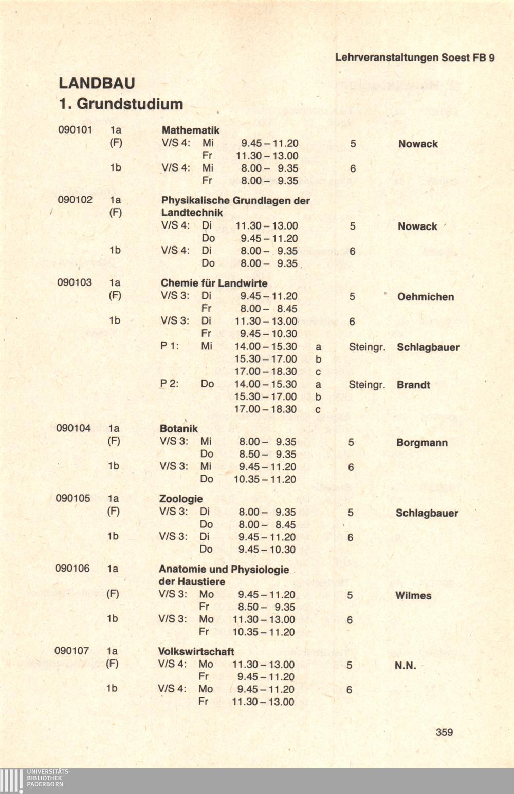 Fachbereich 9: Landbau