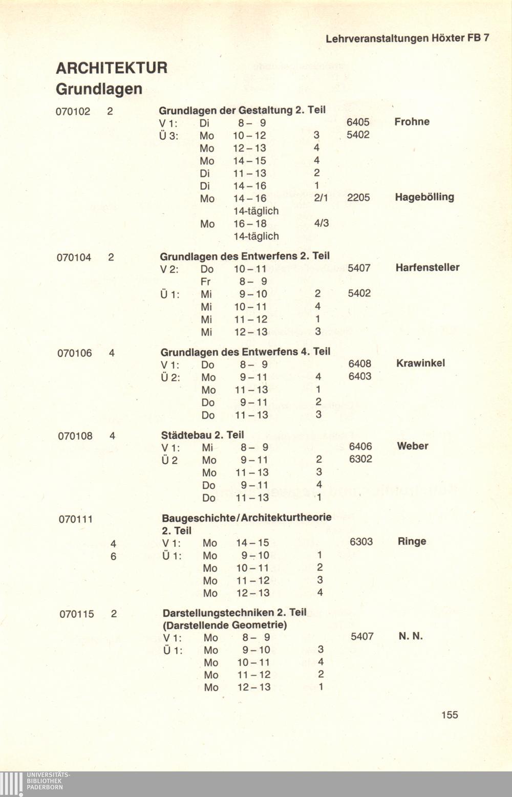 Personal- und Vorlesungsverzeichnis für die Universität Paderborn