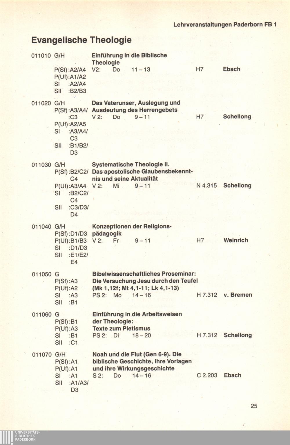 Personal- und Vorlesungsverzeichnis für die Universität Paderborn