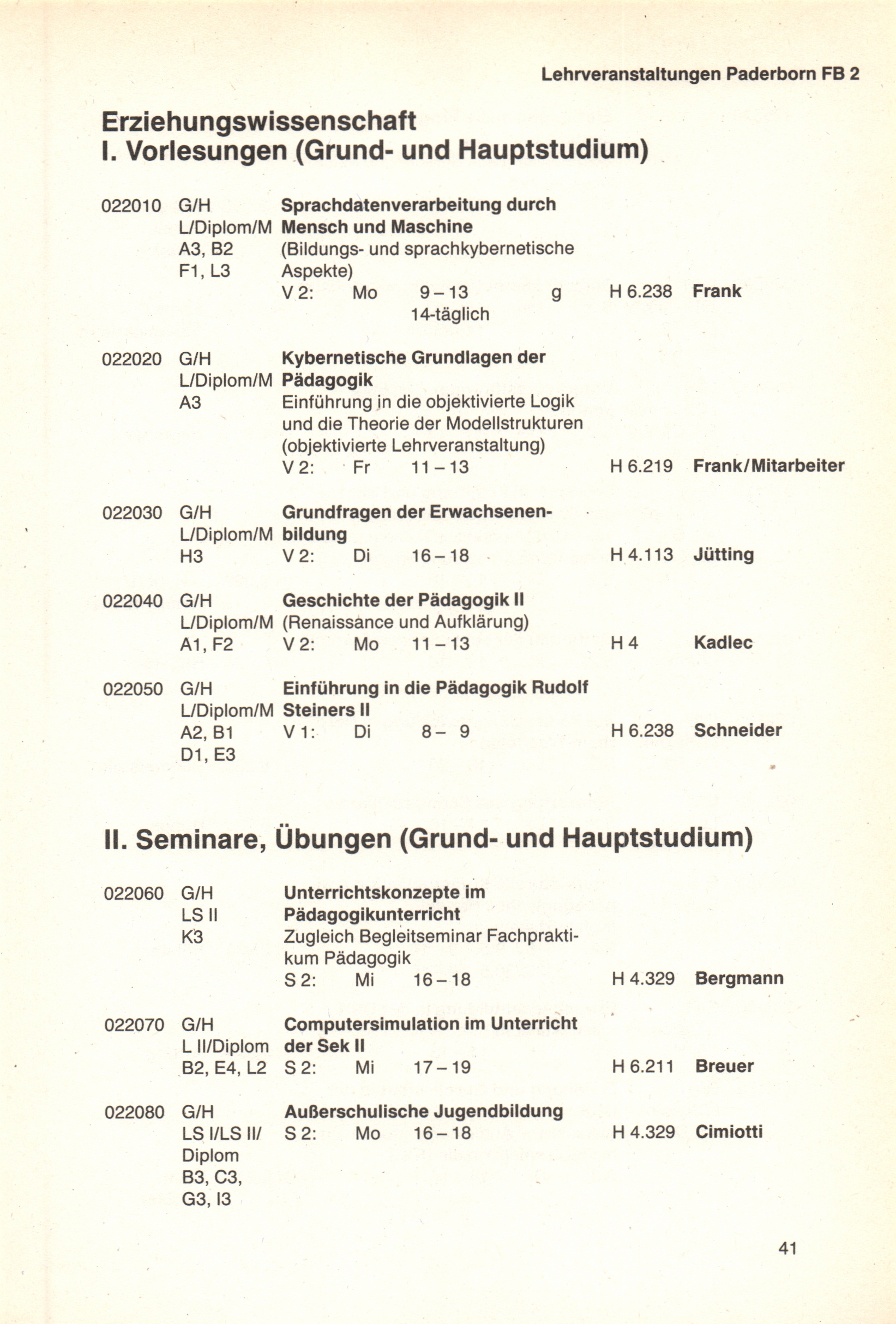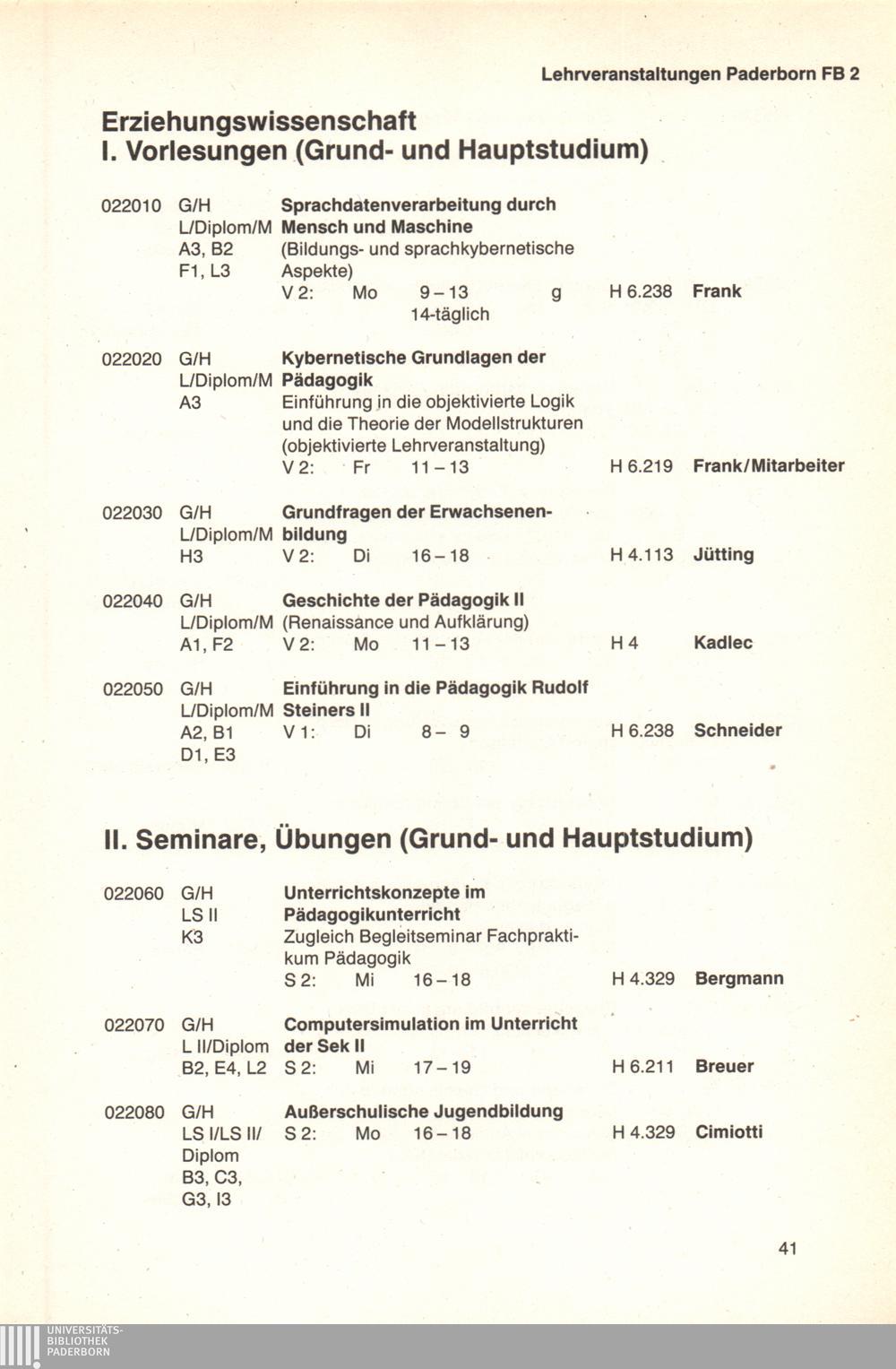 Personal- und Vorlesungsverzeichnis für die Universität Paderborn