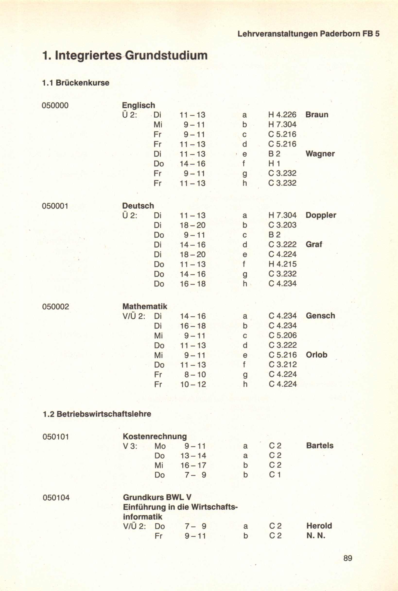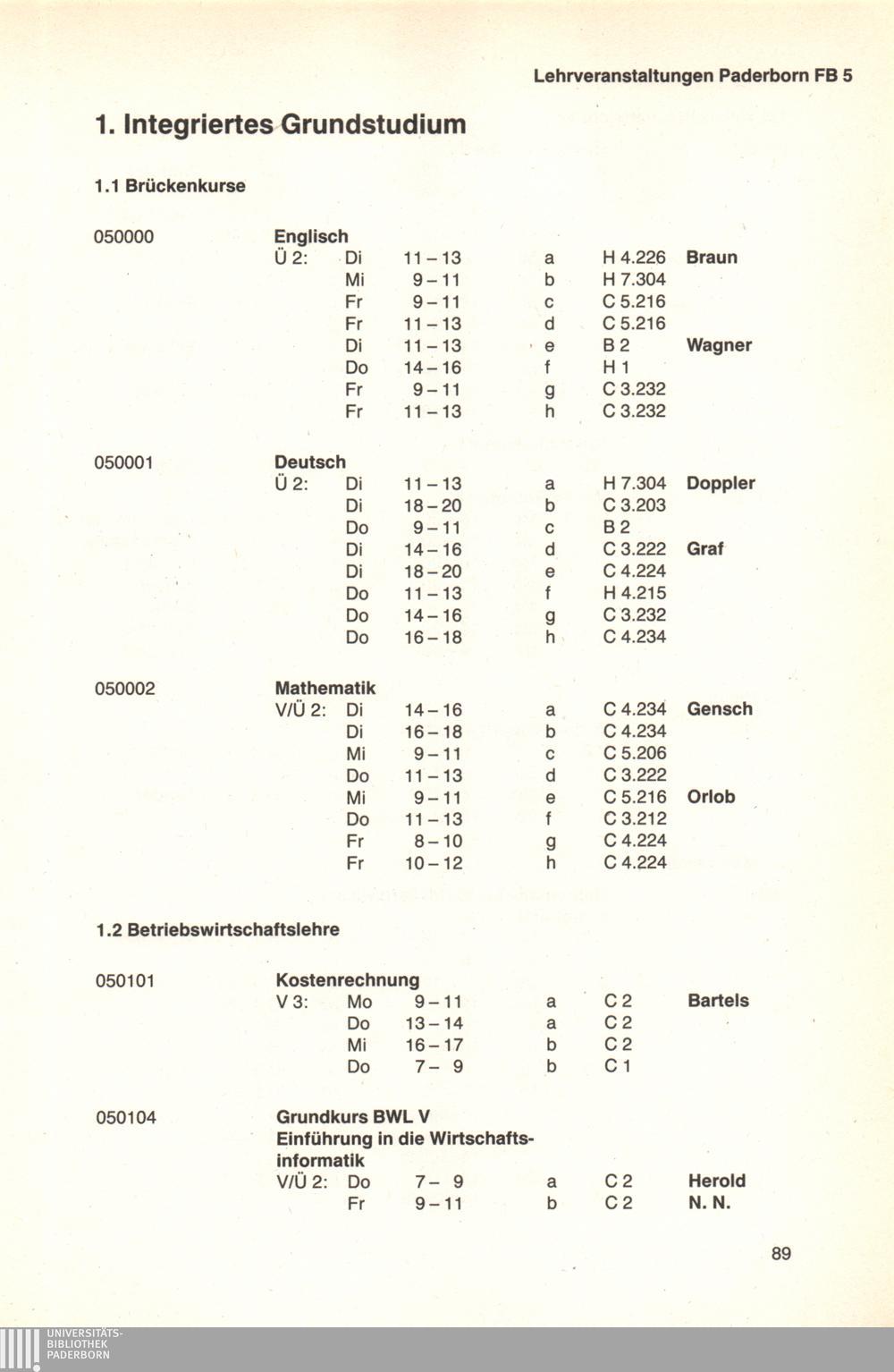 Personal- und Vorlesungsverzeichnis für die Universität Paderborn