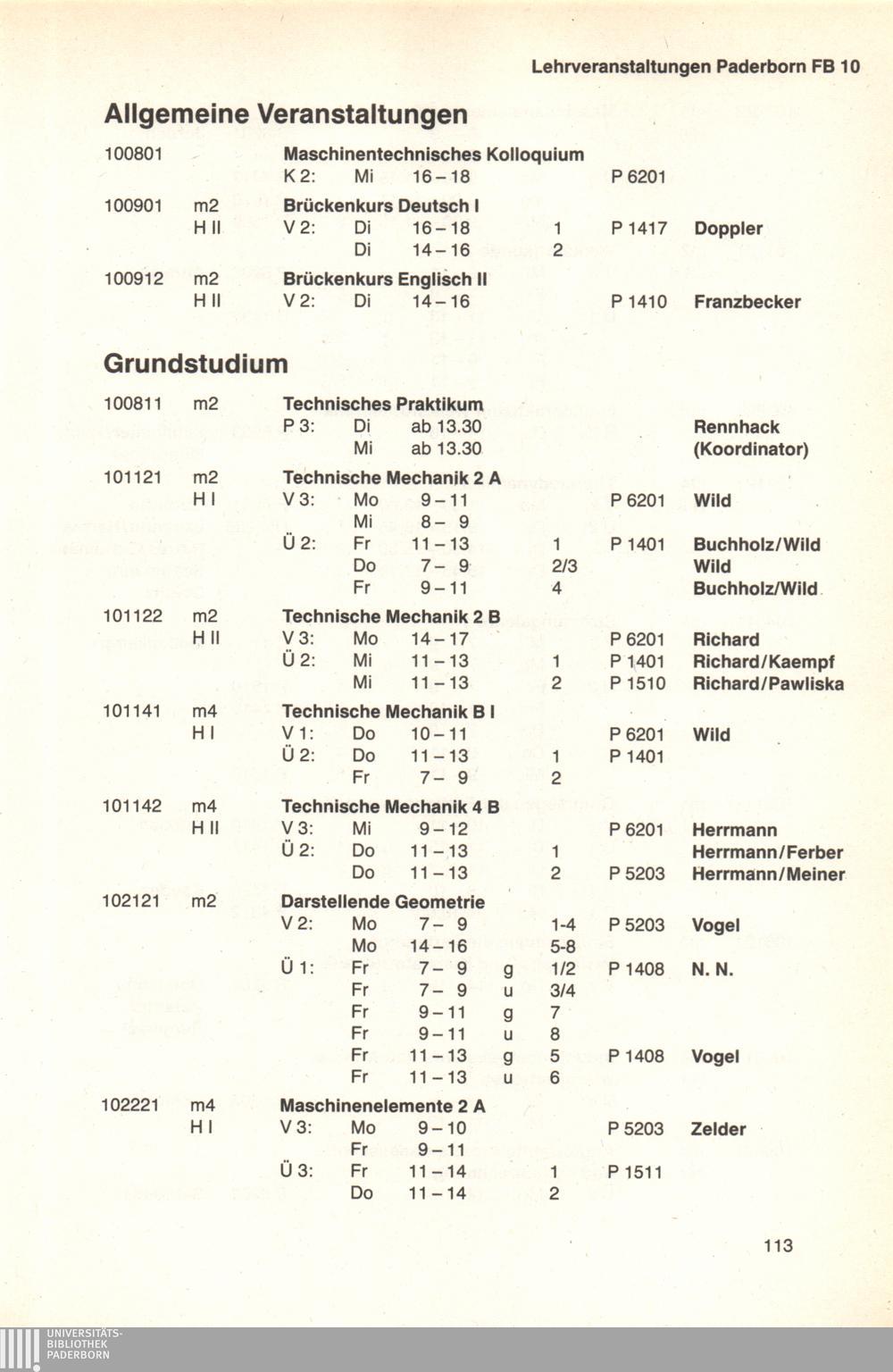 Personal- und Vorlesungsverzeichnis für die Universität Paderborn